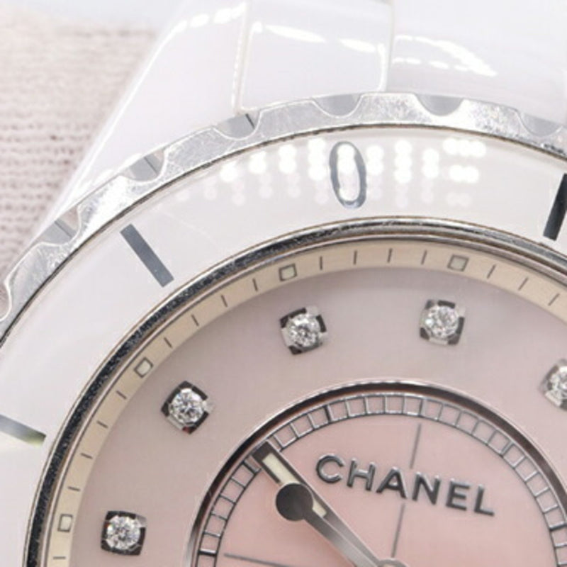 Gebrauchte Chanel Herrenuhr, Limitiert auf 1200 Stück weltweit, J12, Rosa Muschel, 12P Diamant, H5514, Weiße Keramik, SS, Automatik, Perlmutt, Edition, CHANEL