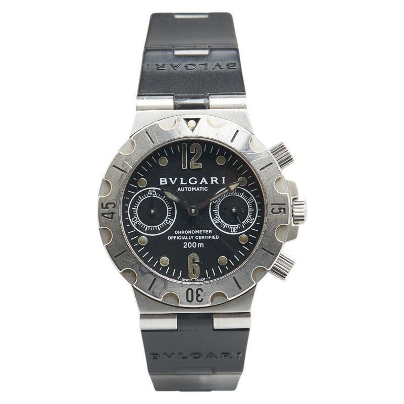 Gebrauchte Bvlgari Diagono Scuba Uhr SCB38S Automatik Schwarzes Zifferblatt Edelstahl Kautschuk Herren BVLGARI