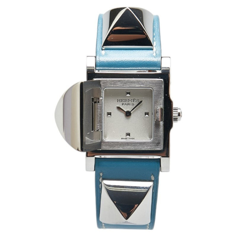 Gebrauchte Hermes Medor Uhr ME2.210 Quarz weißes Zifferblatt Edelstahl Leder Damen HERMES
