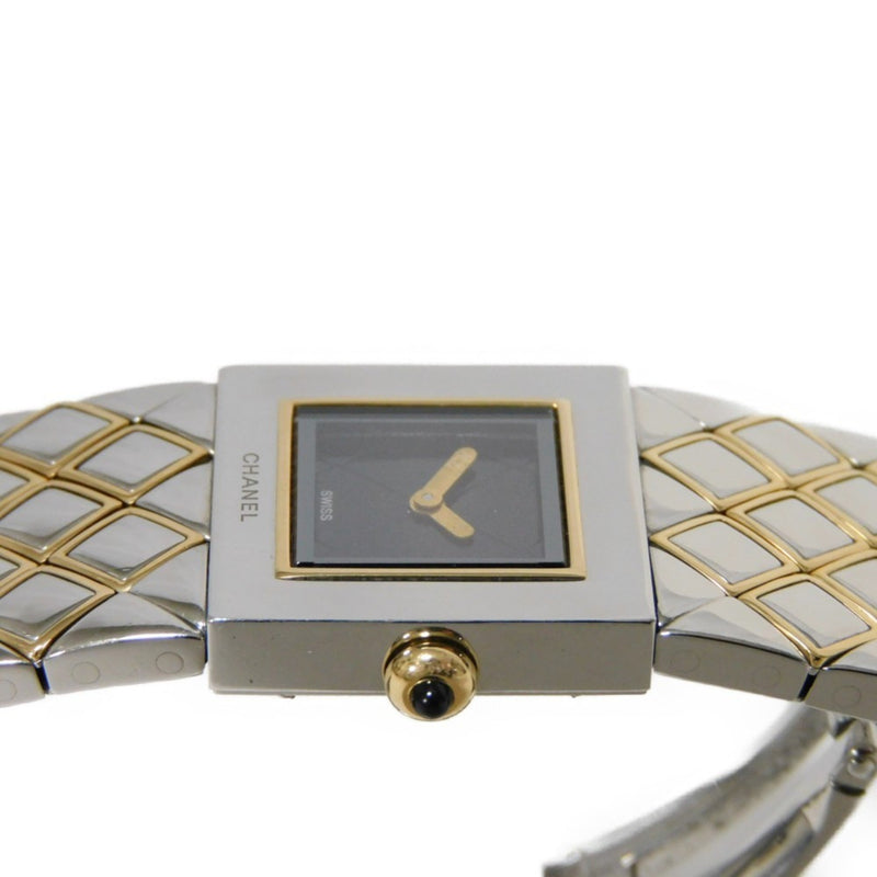 Gebrauchte CHANEL Uhr, Matelassé, Schwarzes Zifferblatt, Quarz, SS/YG, H0475, Damen