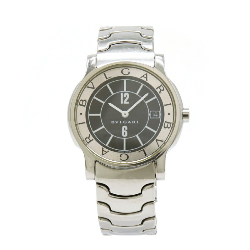 Gebrauchte BVLGARI Solotempo Herren-Quarzuhr mit schwarzem Zifferblatt und Datumsanzeige, Edelstahl, ST35S