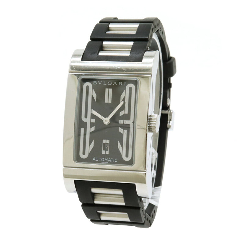 Gebrauchte BVLGARI Rettangolo Herrenuhr mit schwarzem Zifferblatt, Edelstahl und Gummi, automatische Uhr RT45S