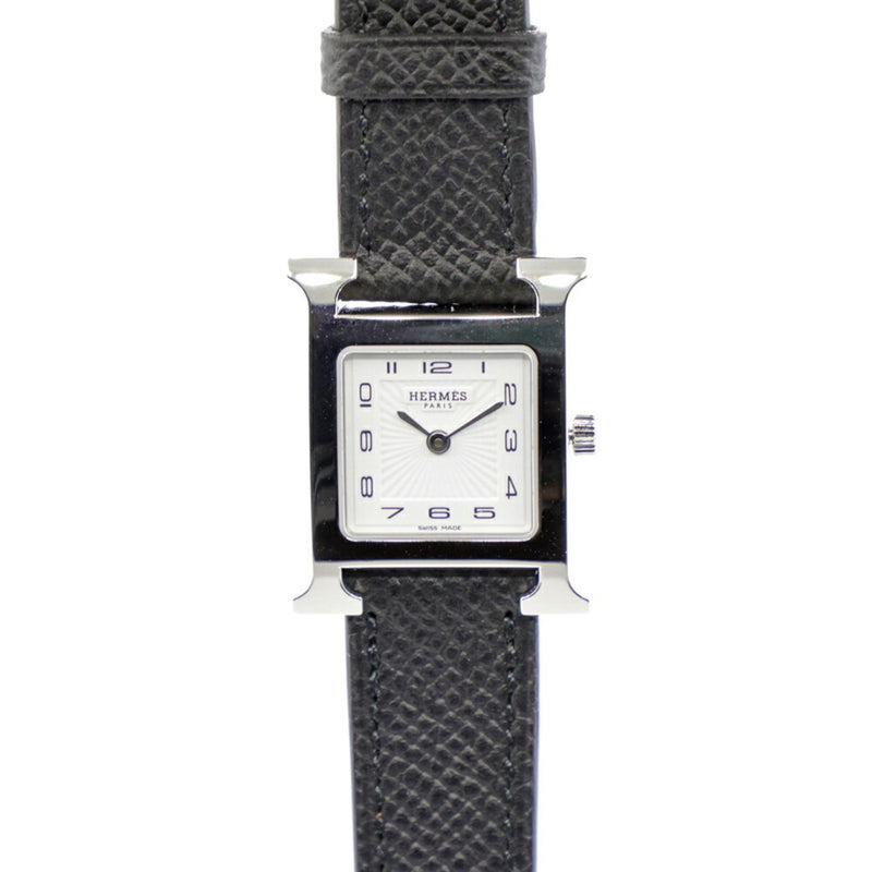 Pre-Owned Herm?s H Watch, white dial, stainless steel, leather, quartz movement, HH1.210, silver and black, women's watch, S 1595