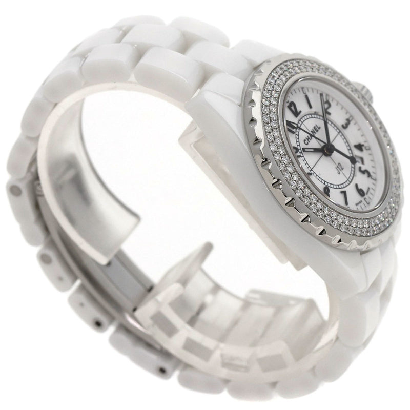 Gebrauchte Chanel J12 33mm weiße Keramikuhr Diamant Damen CHANEL