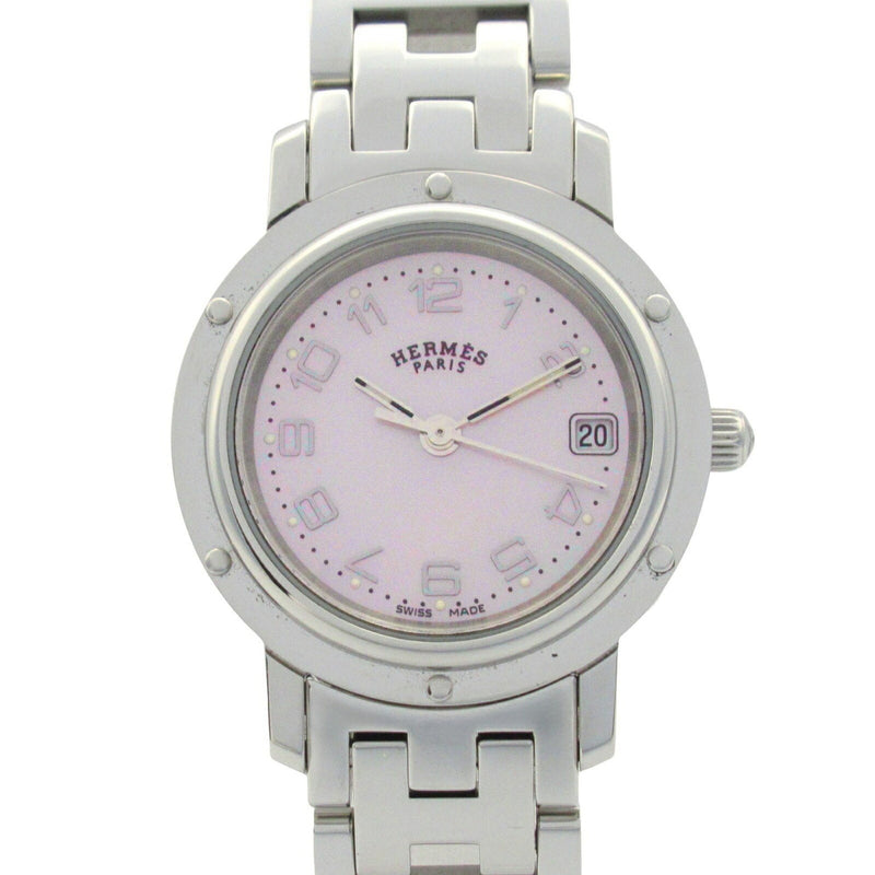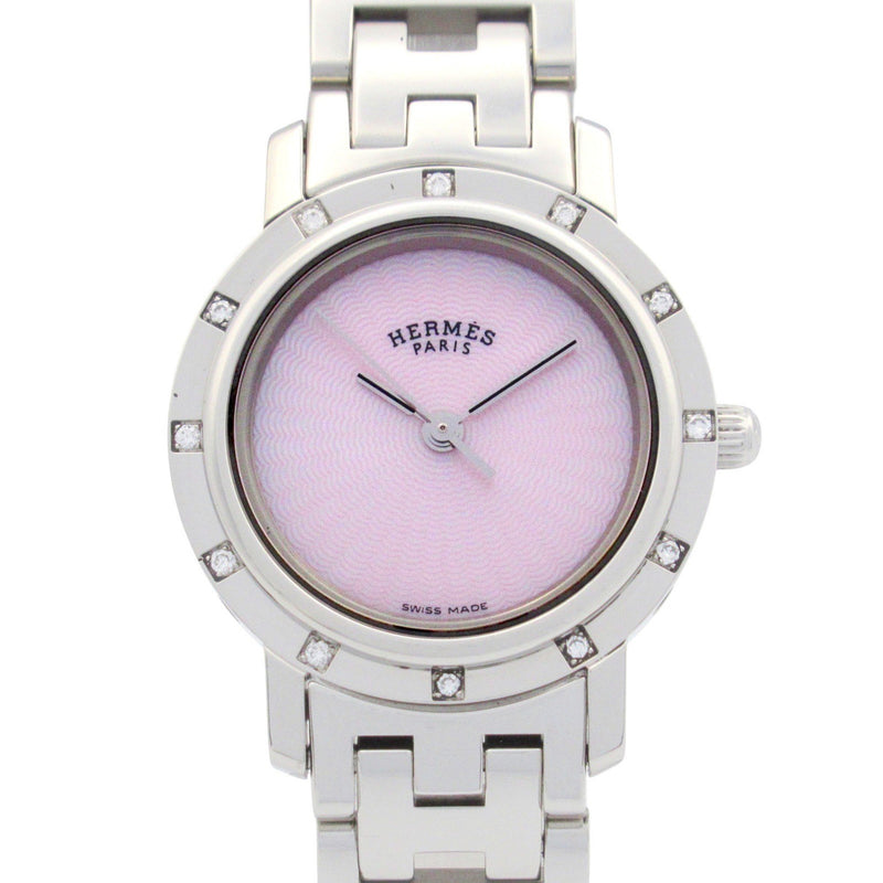 Gebrauchte Hermes Clipper Nacle Diamant Lünette Uhr Edelstahl Damen Rosa Shell CL4.230
