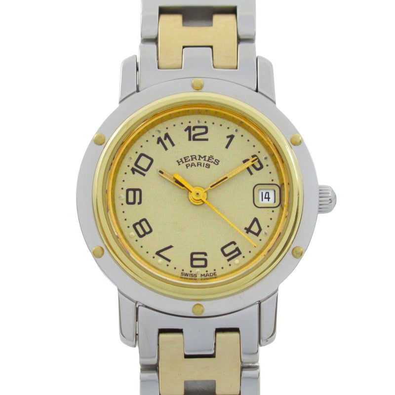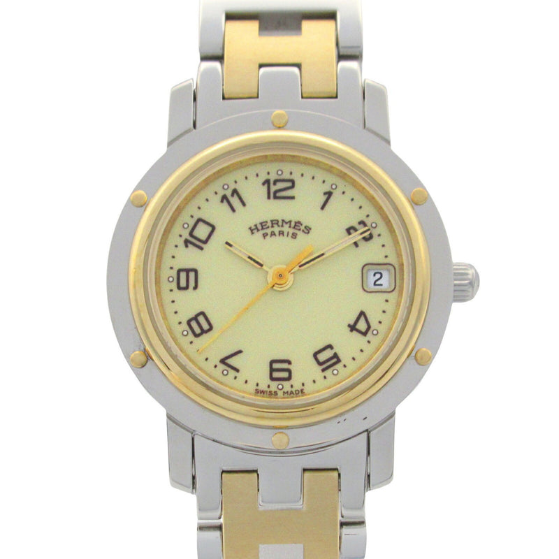 Gebrauchte Hermes Clipper Uhr GP (vergoldet) Edelstahl Damen Elfenbein CL4.220