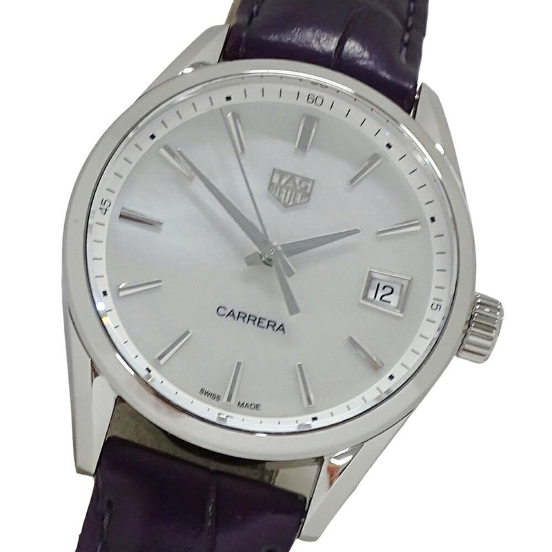 Gebrauchte TAG Heuer Carrera WBK1311 FC8261 Uhr für Damen, Datum, Shell, Quarz, Edelstahl, SS, Leder, poliert