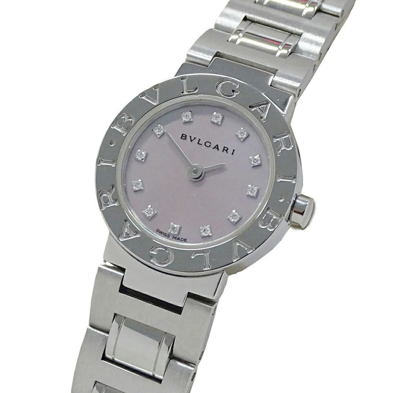 Gebrauchte BVLGARI Damenuhr 12P Diamant Pink Shell Quarz Edelstahl SS BB23SS Silber Rund Poliert