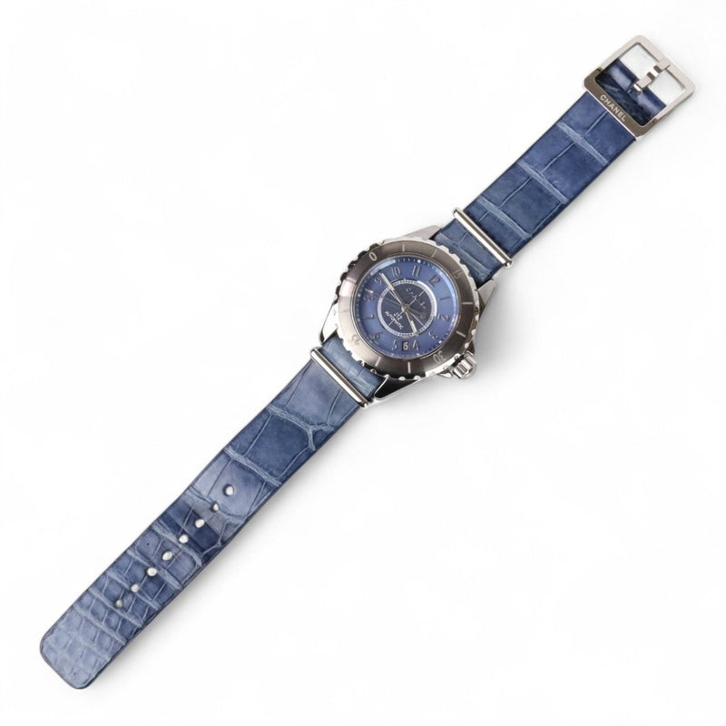 Gebrauchte CHANEL J12 G.10 Titan Keramik 38mm Automatikuhr H4338 Blau Metallic Silber Farbe Herren