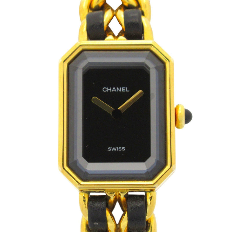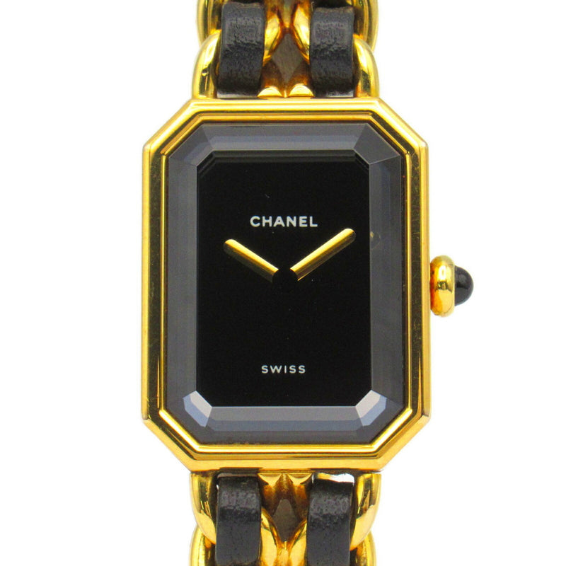 Gebrauchte CHANEL Premiere S Uhr GP (vergoldet) Leder Damen Schwarz H0001