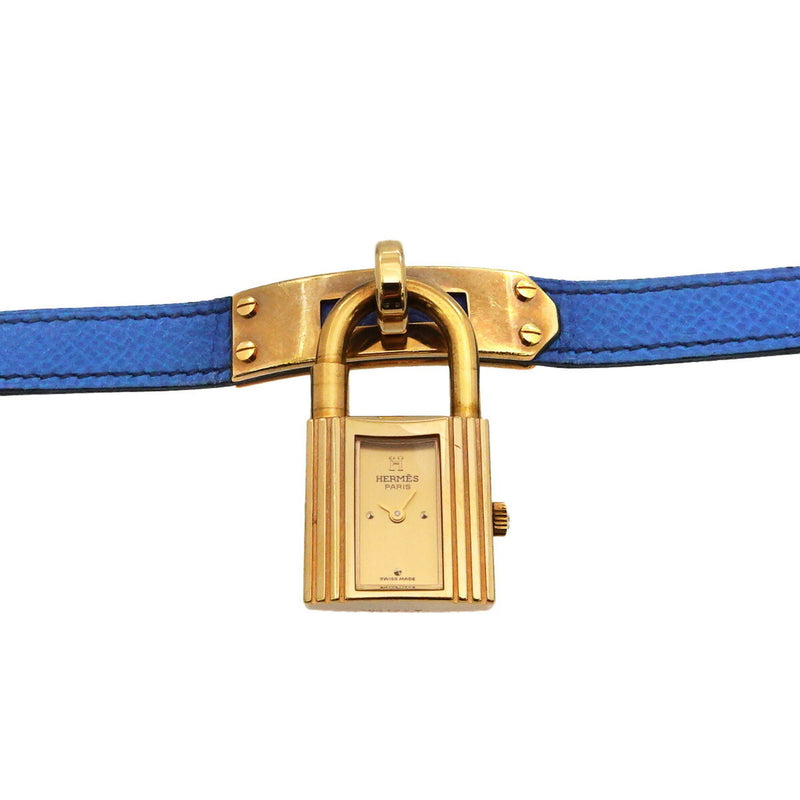 Gebrauchte Hermes Kelly Uhr Damen Gold Blau Quarz Vorhängeschloss