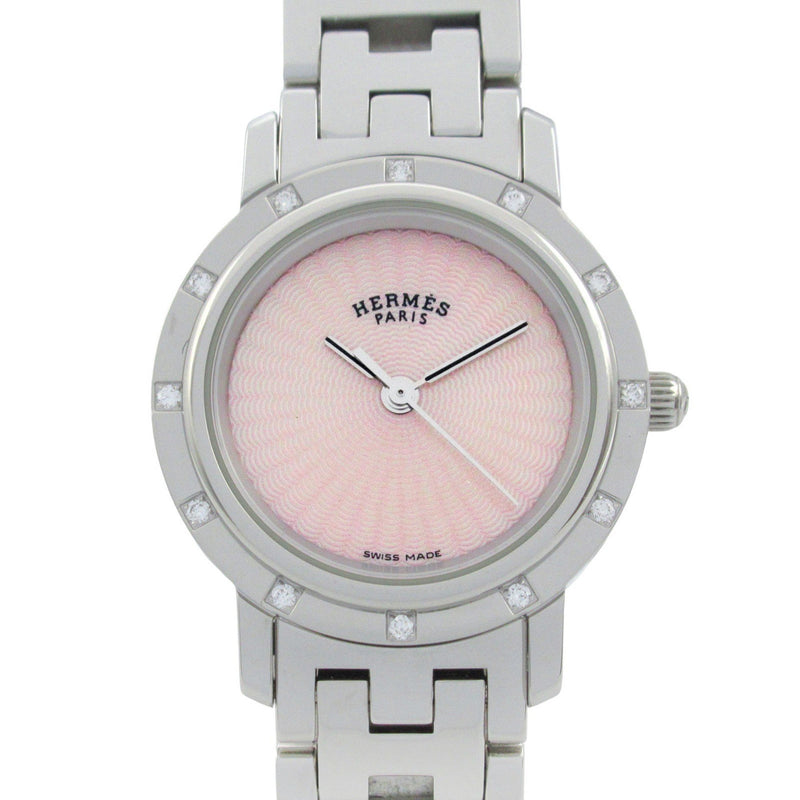 Gebrauchte Hermes Clipper Nacle 12P Diamantuhr Edelstahl Damen Rosa Schale CL4.230