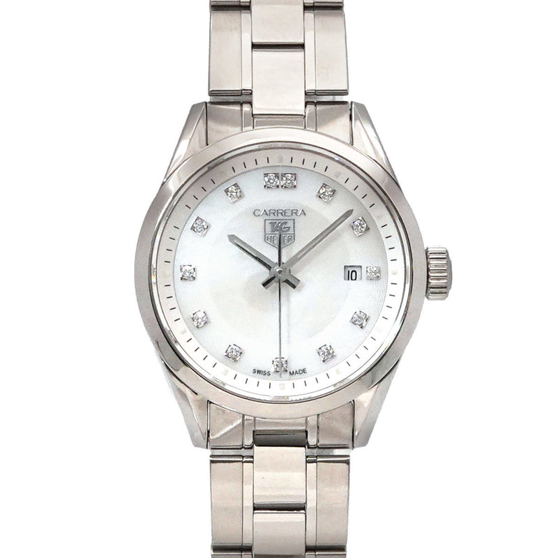Gebrauchte TAG Heuer Carrera WV1411 Damenuhr 13P Diamant Datum Weißes Muschelquarz