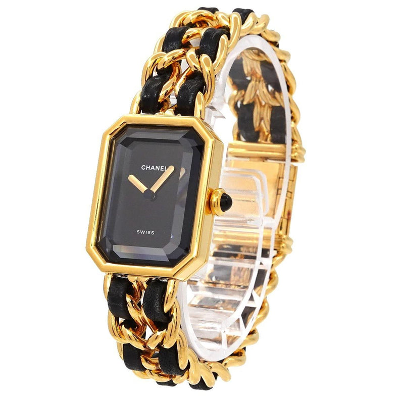 Gebrauchte CHANEL Premiere M Größe H0001 Damenuhr Schwarz Gold Quarz