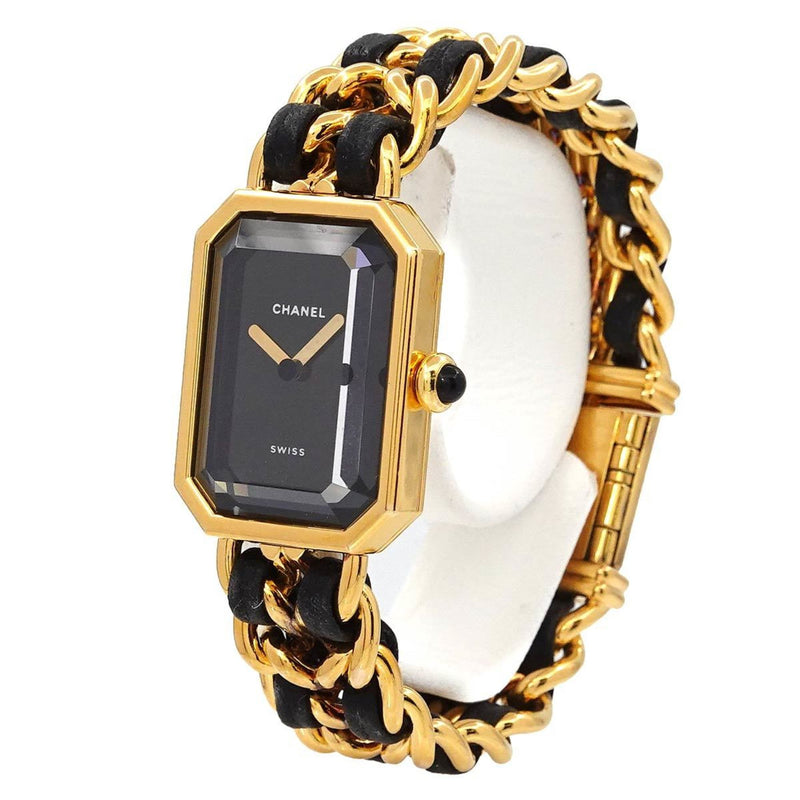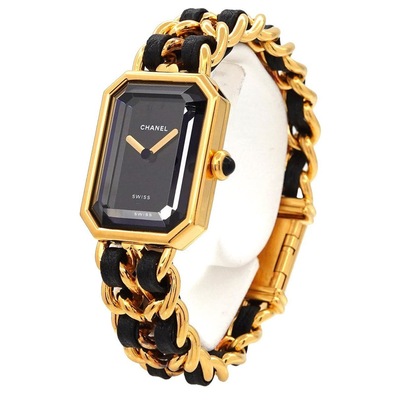 Gebrauchte CHANEL Premiere L Größe H0001 Damenuhr Schwarz Gold Quarz