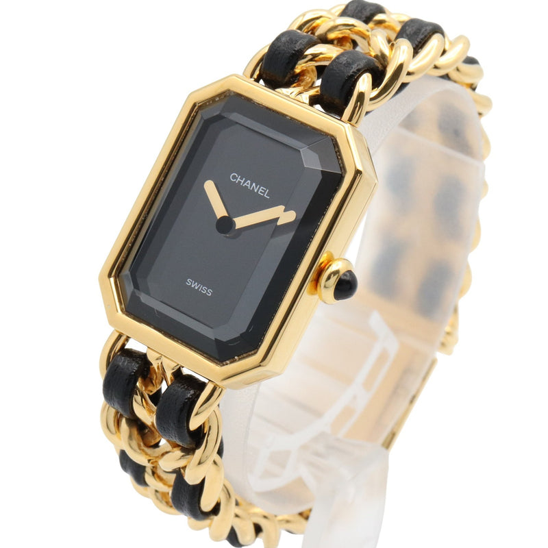 Pre-Owned CHANEL Premiere S Watch, GP (Gold Plated), Leather, Women's, Black, H0001