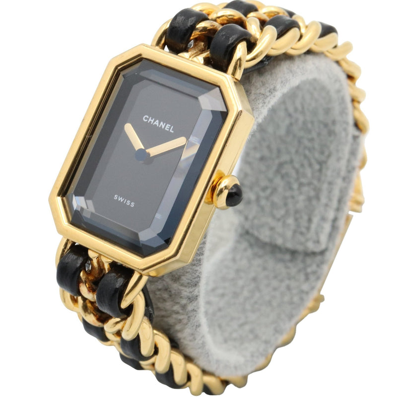 Pre-Owned CHANEL Premiere S Watch, GP (Gold Plated), Leather, Women's, Black, H0001
