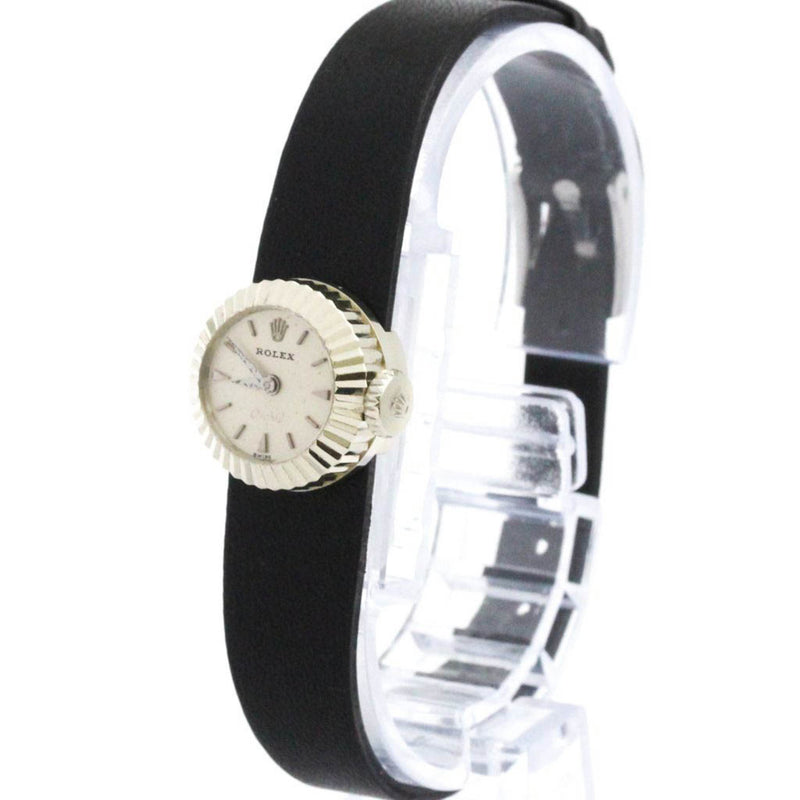 Pre-Owned ROLEX Orchid 18K White Gold Leather Hand-Winding Ladies Watch Vintage