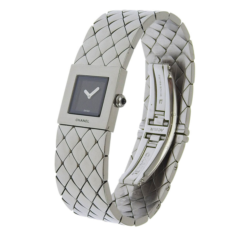 Pre-Owned CHANEL Matelasse Watch H0009, Stainless Steel, Quartz Movement, Analog Display, Black Dial, Women's