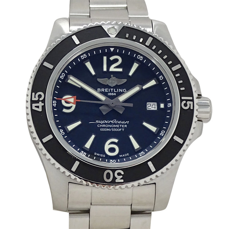 Pre-Owned Breitling Superocean 44 A17367 Men's Automatic Watch with Date Display, Stainless Steel, Silver/Black, Polished