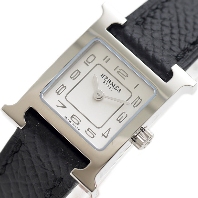 Pre-Owned Herm?s H Watch Mini Women's Silver Dial Leather Strap Quartz Movement HH1.110