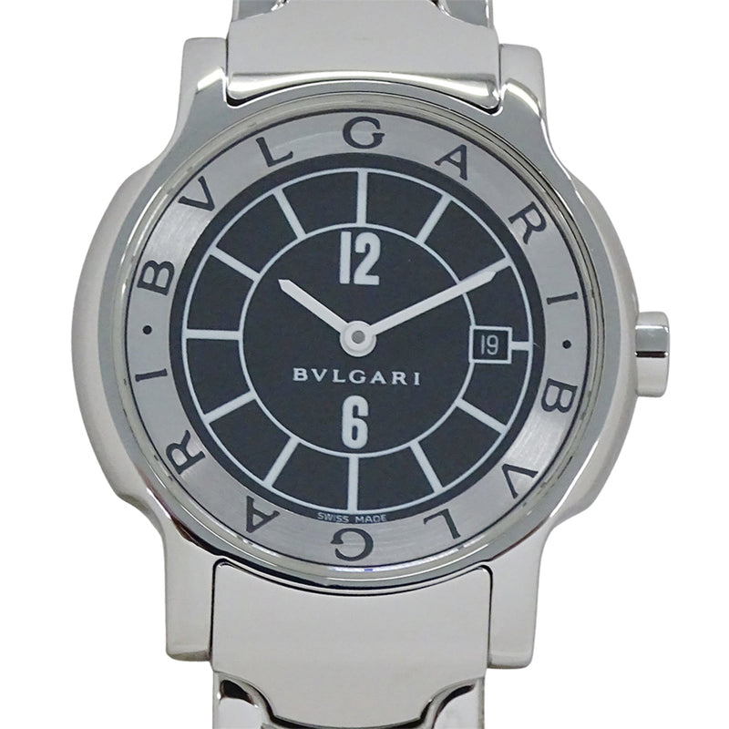 Pre-Owned Bvlgari Solotempo Women's Watch with Date, Quartz Movement, Stainless Steel, ST29S, Silver/Black, Polished