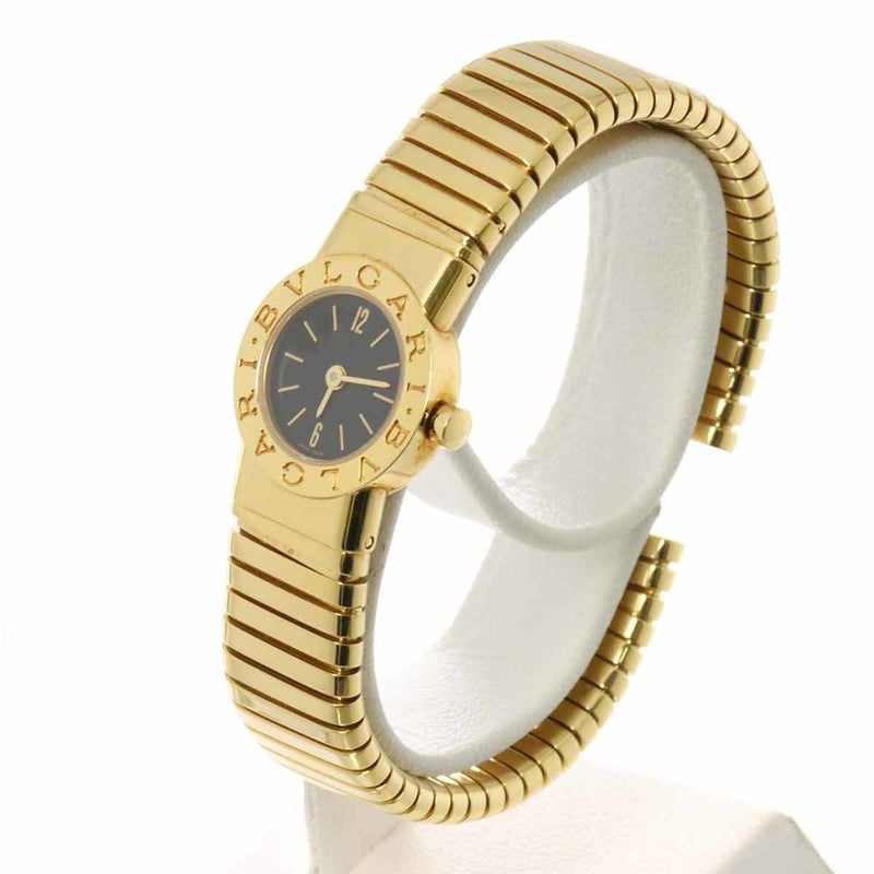 Pre-Owned BVLGARI Tubogas BB19 2TG Women's Watch in Black 18K Yellow Gold with Solid Quartz Movement