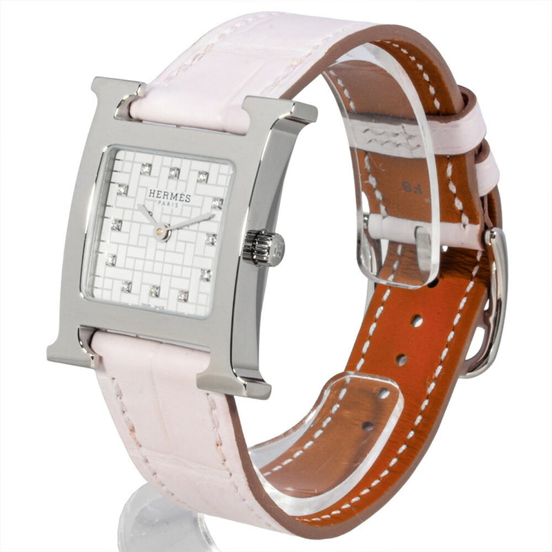 Pre-Owned Hermes HERMES HH1.210C H Watch Quartz White Dial 12P Diamond SS Ladies