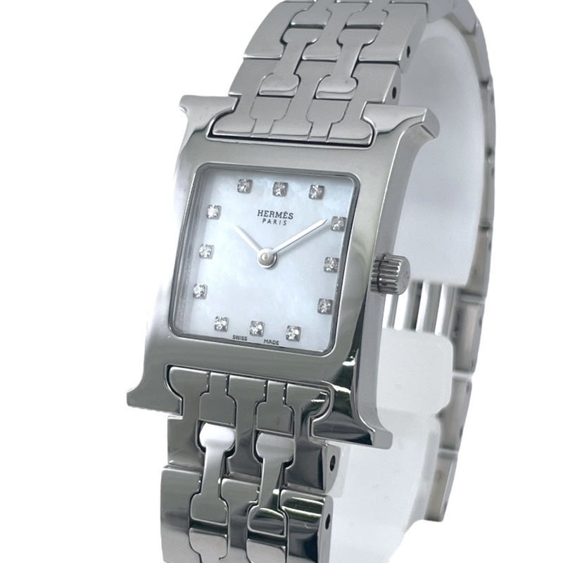 Pre-Owned HERMES H Watch HH1.210 Women's Stainless Steel Quartz with Shell Dial and 12 Diamonds