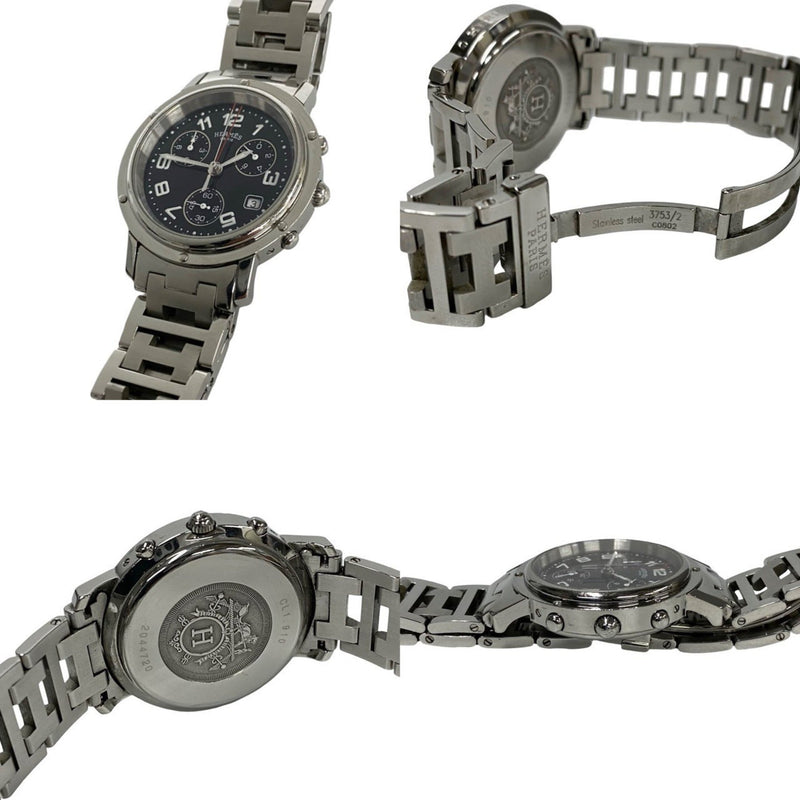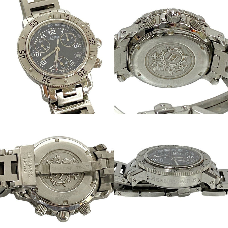 Pre-Owned HERMES Clipper Stainless Steel Quartz Watch for Men, Silver and Black, 30838