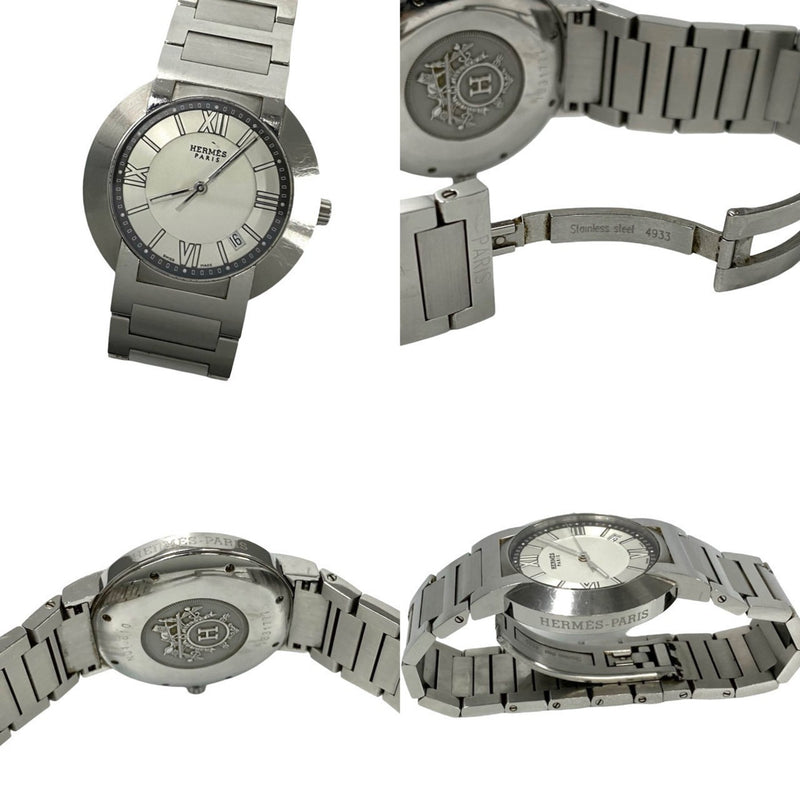 Pre-Owned HERMES H Watch Stainless Steel Wristwatch for Men and Women, Silver, 23685