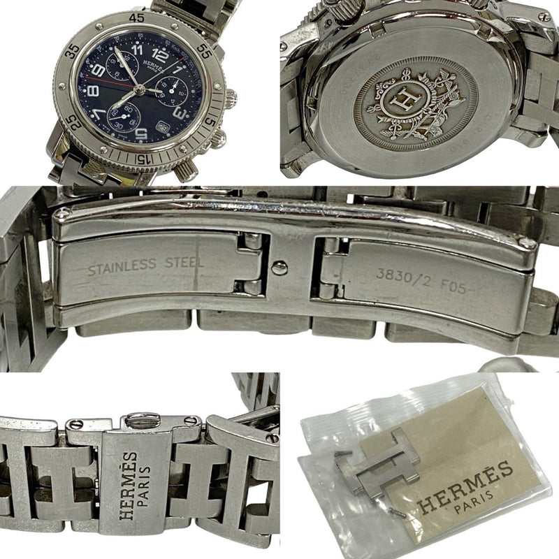 Pre-Owned HERMES Clipper Date Stainless Steel Wristwatch for Men, Silver, 23951