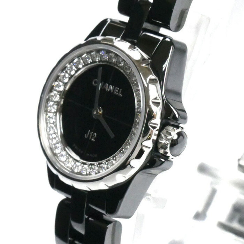 Pre-Owned CHANEL J12 33mm H2427 Large Diamond Bezel Women's Watch with 11 Diamonds, Date Display, Black Ceramic Quartz Movement