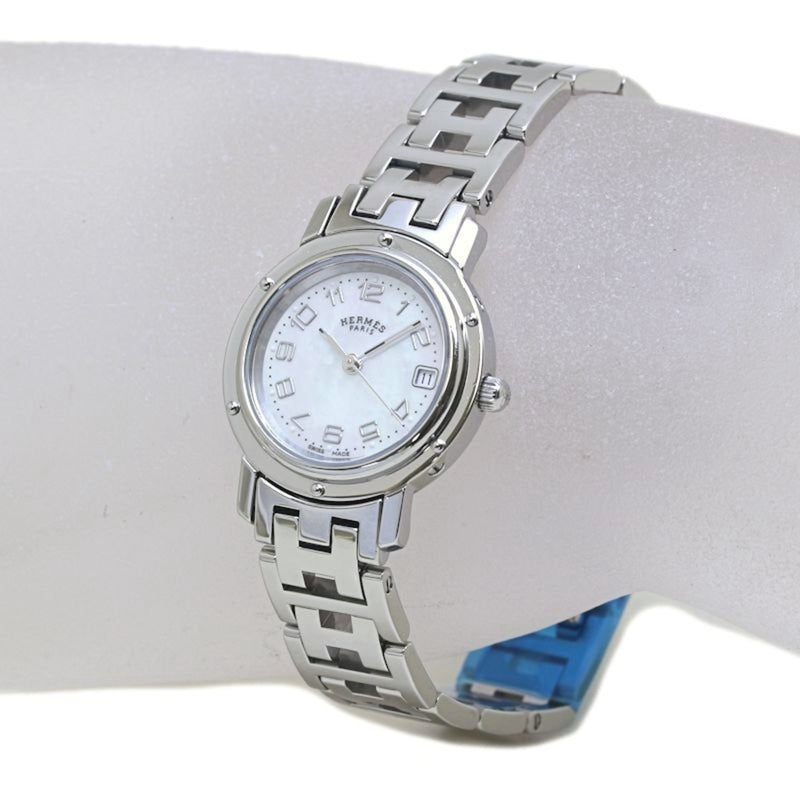 Pre-Owned HERMES Clipper Nacr?e White Shell Watch with New Buckle, Women's, CL4.210.212, 3821 Stainless Steel, 40044