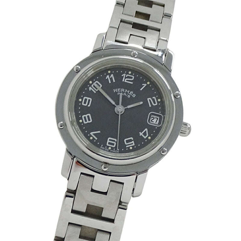 Pre-Owned Herm?s Clipper Date Quartz Stainless Steel Watch CL4.210, Silver Gray, Polished