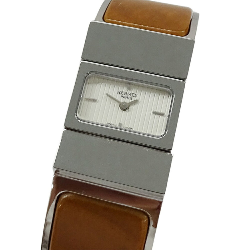 Pre-Owned Herm?s Women's L01.210 Quartz Stainless Steel Watch with Bangle, Silver and Brown, Polished