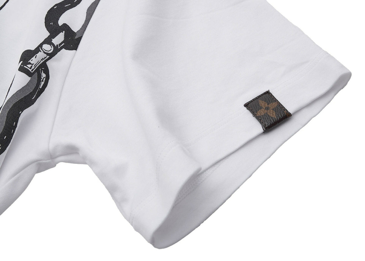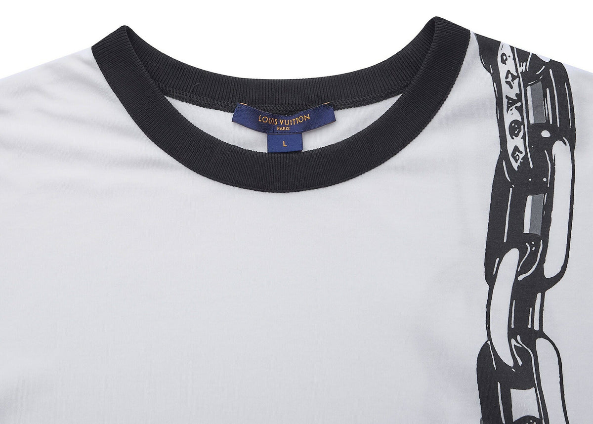 Dieses T-Shirt in einer atemberaubenden Kombination aus Weiß und Schwarz präsentiert sich mit dem ikonischen Louis Vuitton Monogram Chain Design und unterstreicht Ihren anspruchsvollen Geschmack. Die Cut-and-Sew-Konstruktion erhöht nicht nur die Haltbarkeit, sondern verleiht Ihnen auch einen einzigartigen Stil, der in jeder Umgebung hervorsticht.