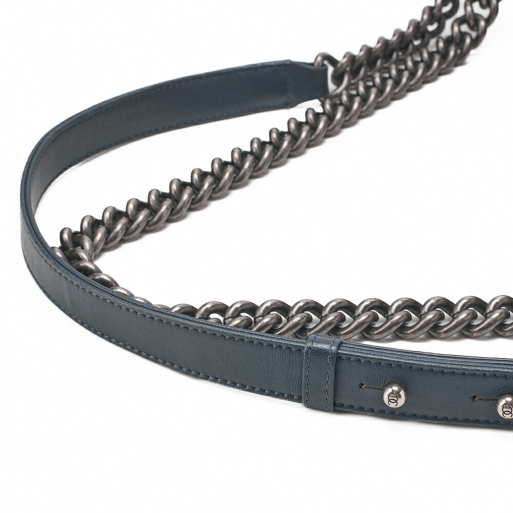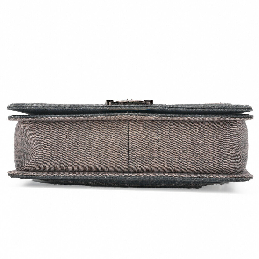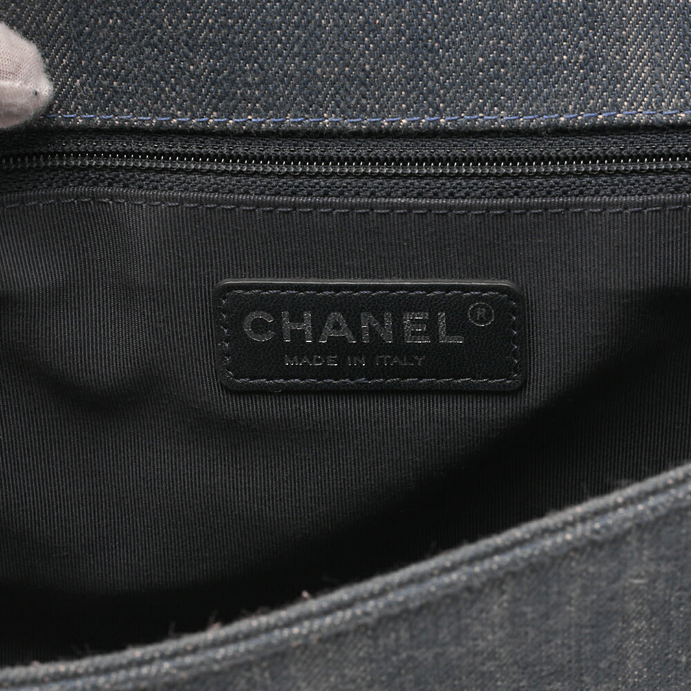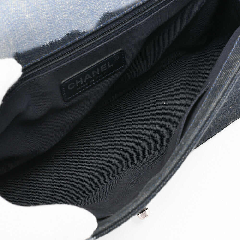 Pre-Owned Boy V Stitch Chain Shoulder Denim Large Size Blue Silver-Tone Hardware, Pre-Owned