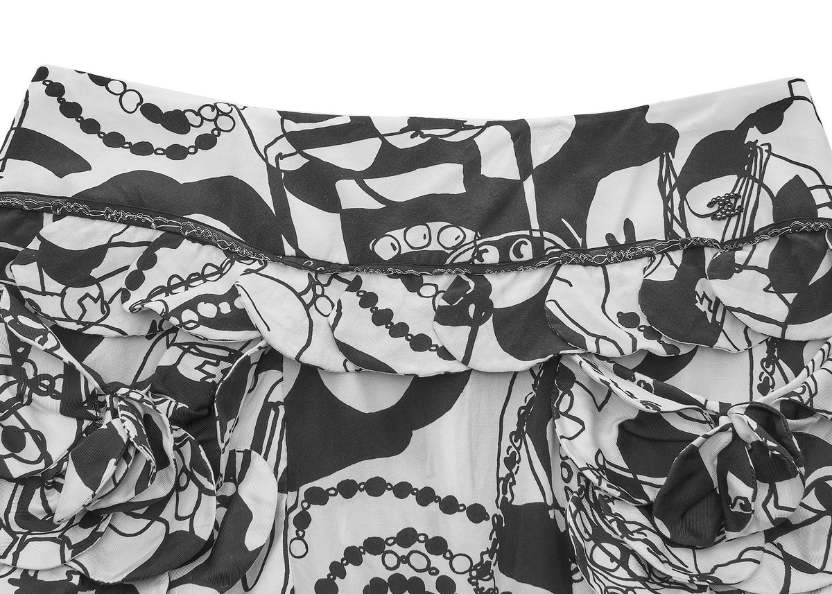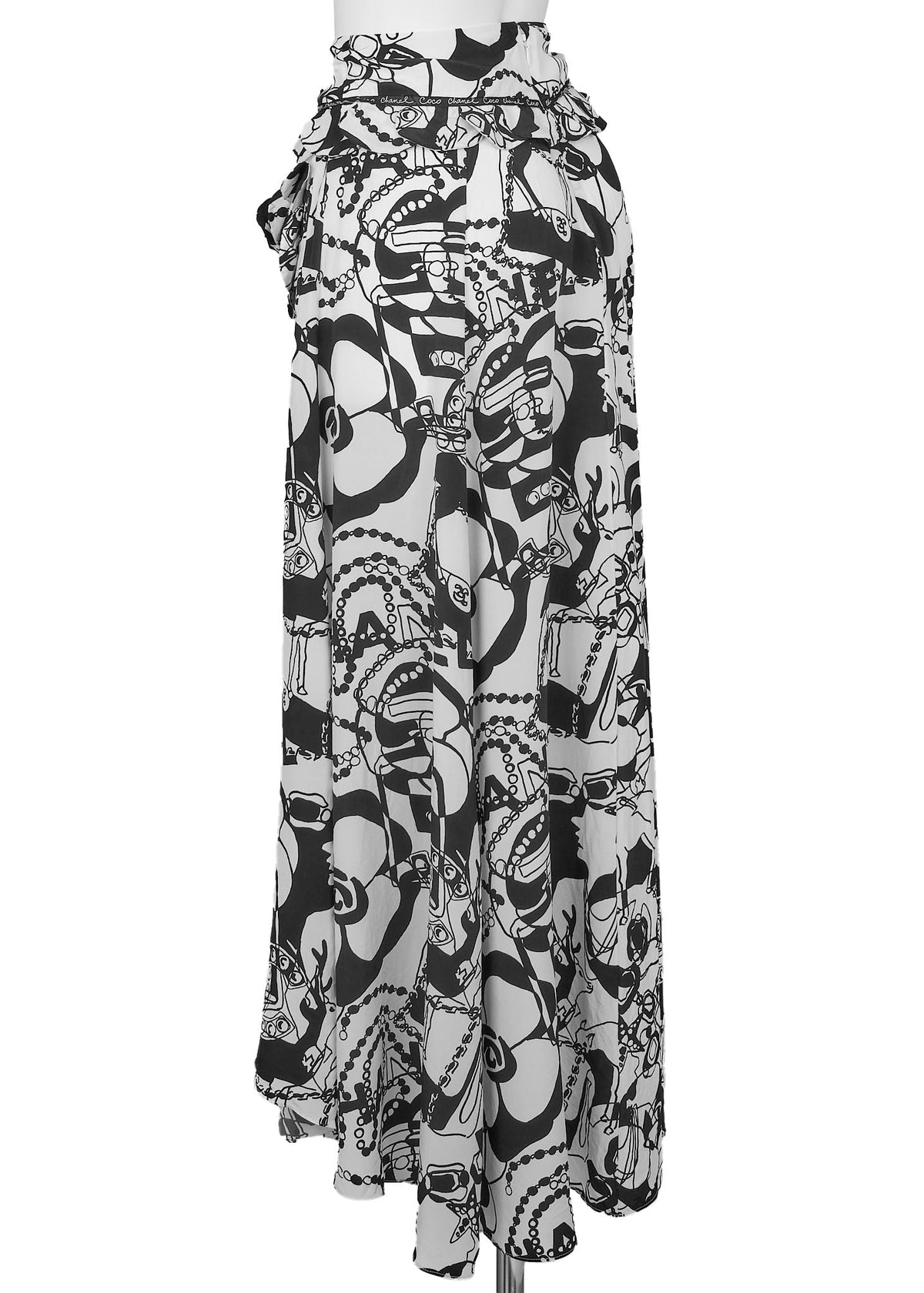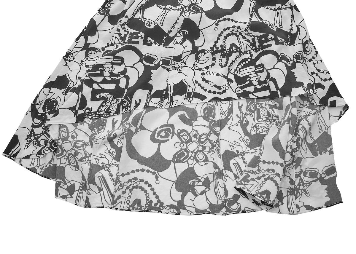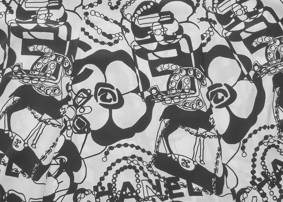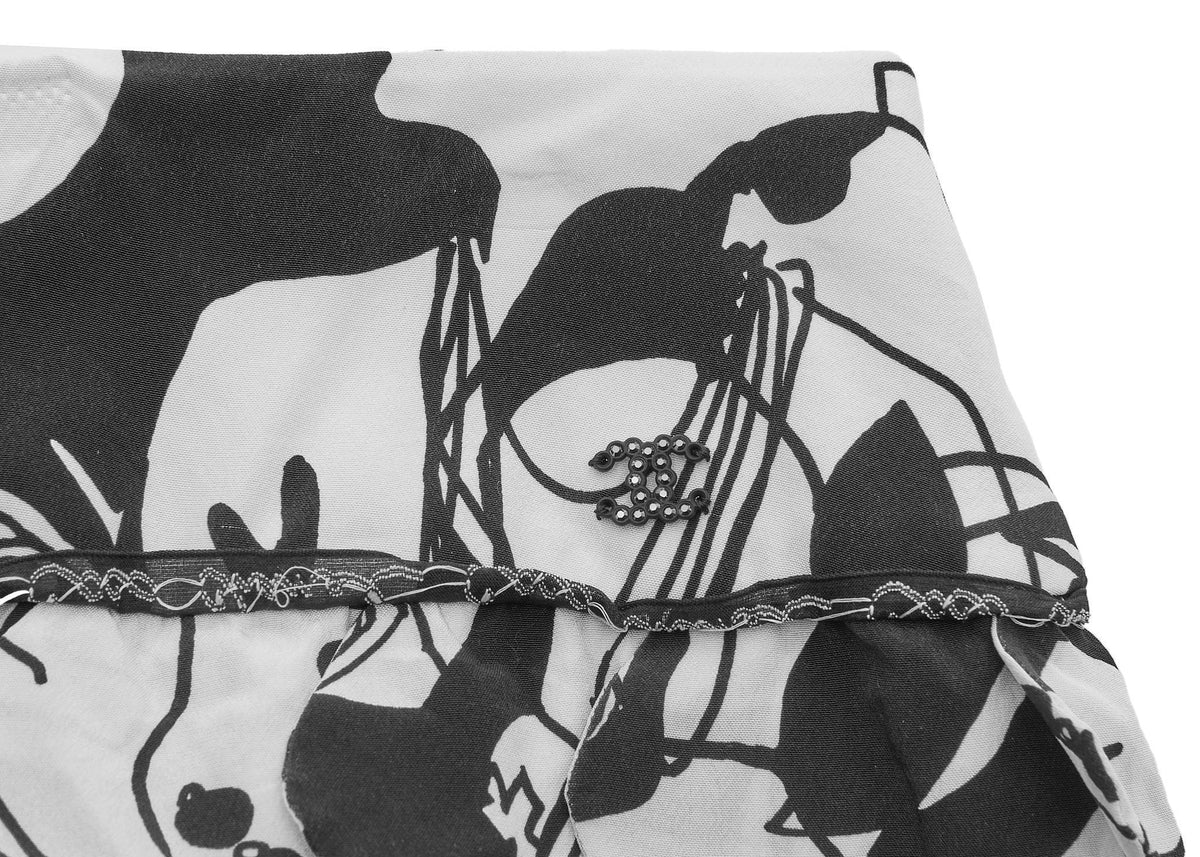 Werten Sie Ihre Garderobe mit dem atemberaubenden CHANEL Camellia Coco Mark Logo Rock 36 Schwarz & Weiß auf . Dieser exquisite lange Rock präsentiert das ikonische CHANEL Camellia Logo, ein Symbol für zeitlose Eleganz und Luxus. Gefertigt aus 100 % Seide , bietet er eine weiche, fließende Silhouette, die Ihre Figur wunderschön umspielt.