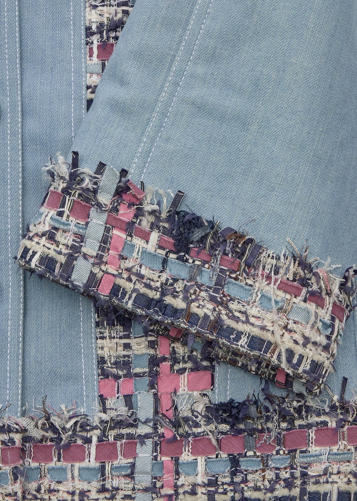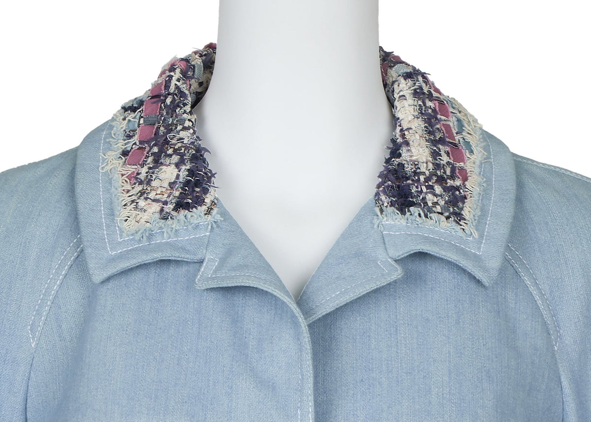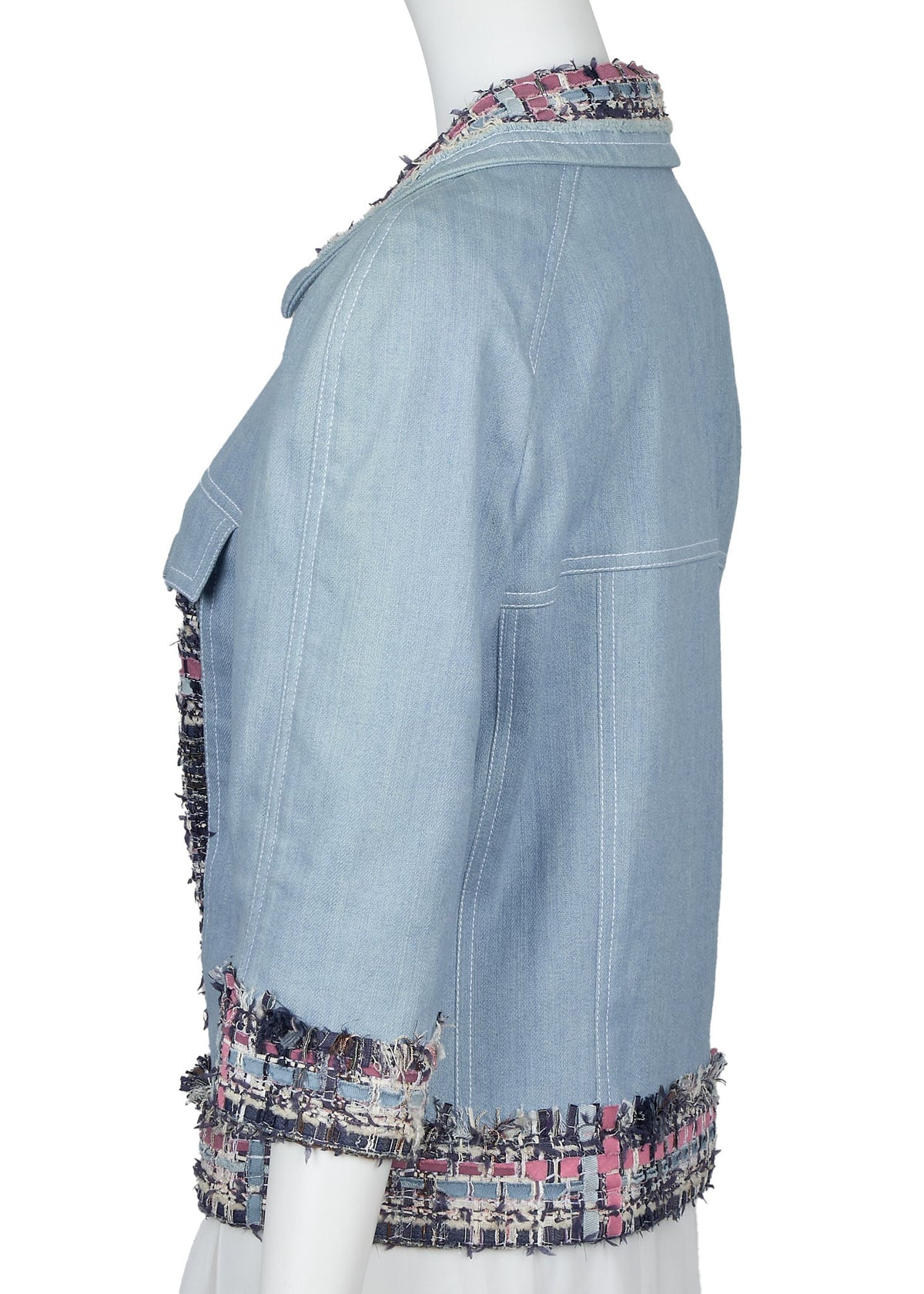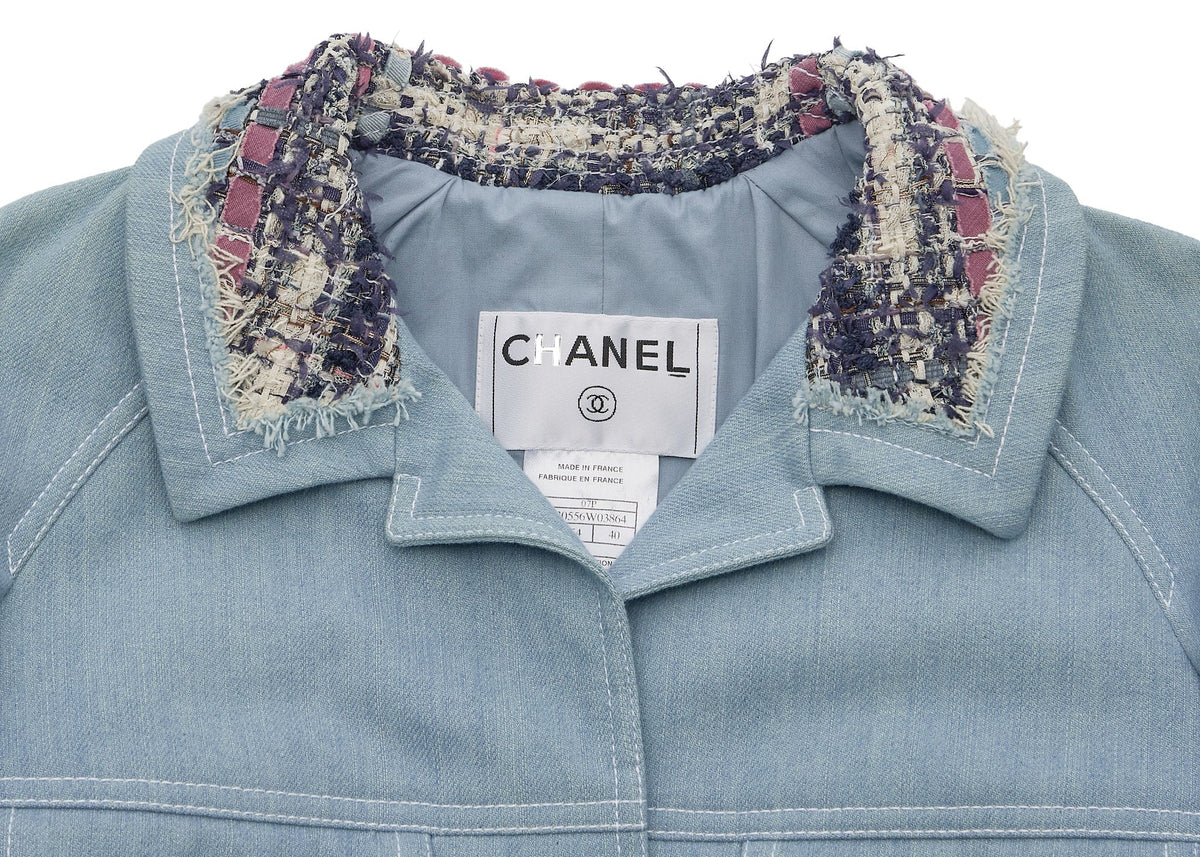 Werten Sie Ihre Garderobe mit der Chanel Coco Button Tweed Jeansjacke auf – ein atemberaubendes Stück, das Eleganz und lässigen Chic perfekt vereint. Die Jacke aus hochwertigen Materialien besticht durch eine luxuriöse Mischung aus 98 % Baumwolle und aufwendigen Tweed-Details – für Komfort und Stil.