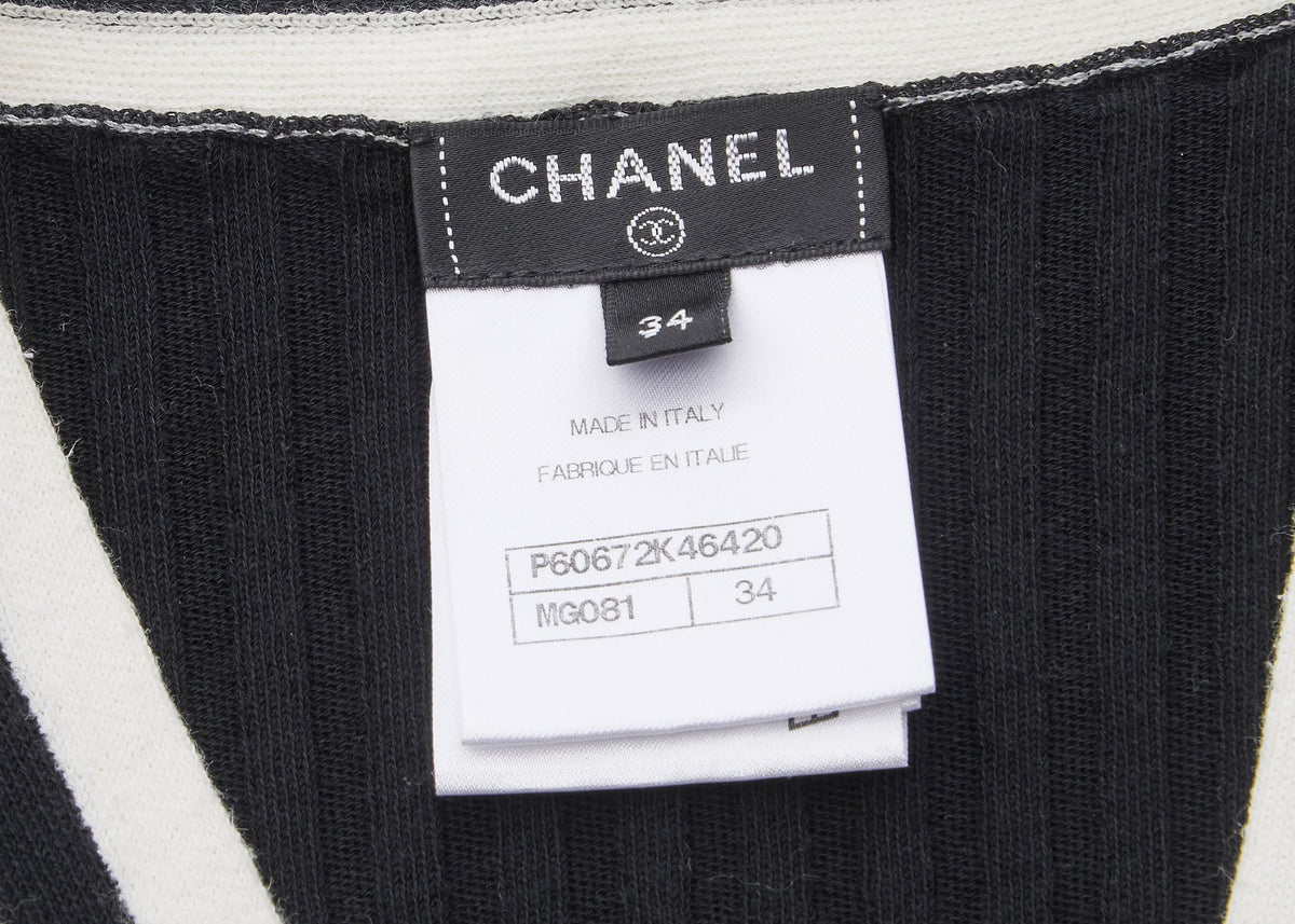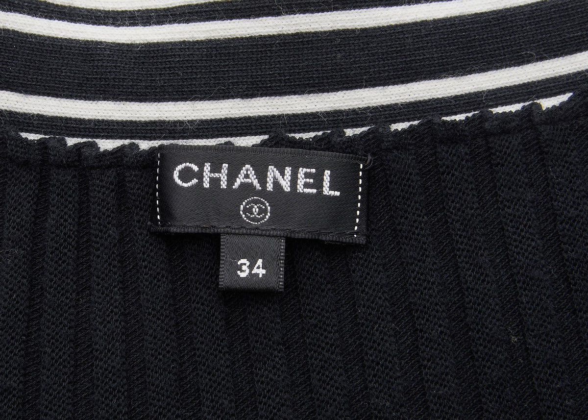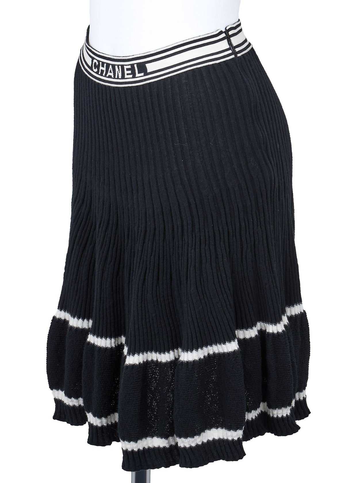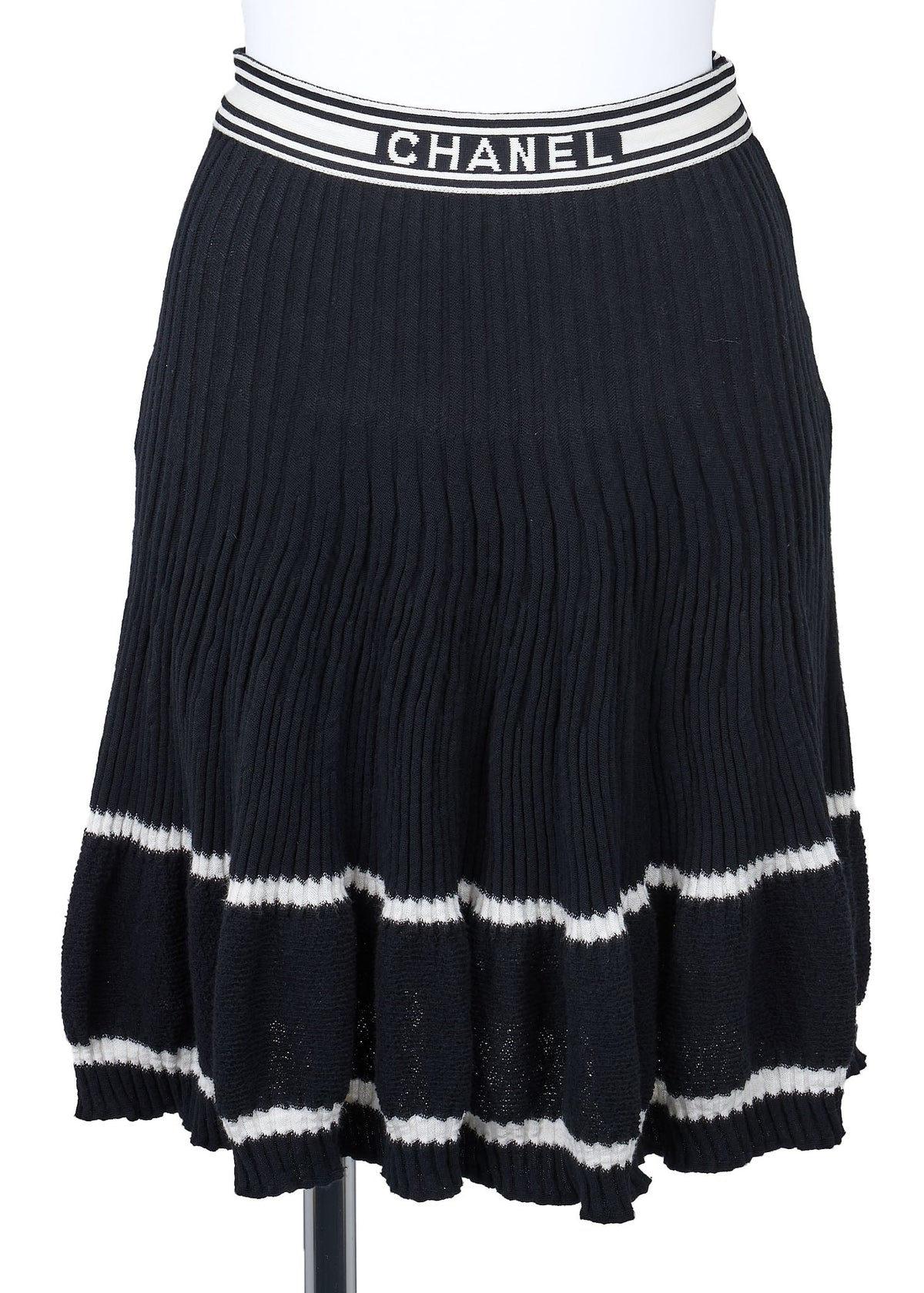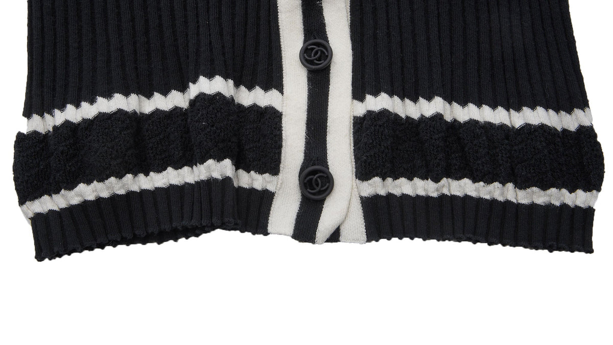 Werten Sie Ihre Garderobe mit dem CHANEL Coco Button Cardigan Skirt Set Up 34 aus schwarz-weißen Strickoberteilen und langärmligen Unterteilen der Marke Brand Apparel auf . Dieses atemberaubende Set vereint zeitlose Eleganz mit modernem Komfort und ist somit ein unverzichtbares Accessoire für jede modebewusste Frau.