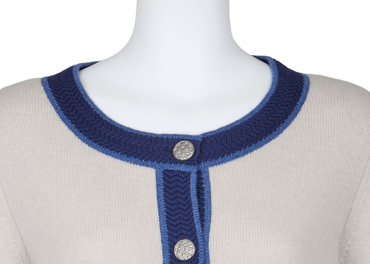 Pre-Owned Cardigan, Coco Button, Kaschmir, Grau, Silberfarbene Hardware, Pre-Owned