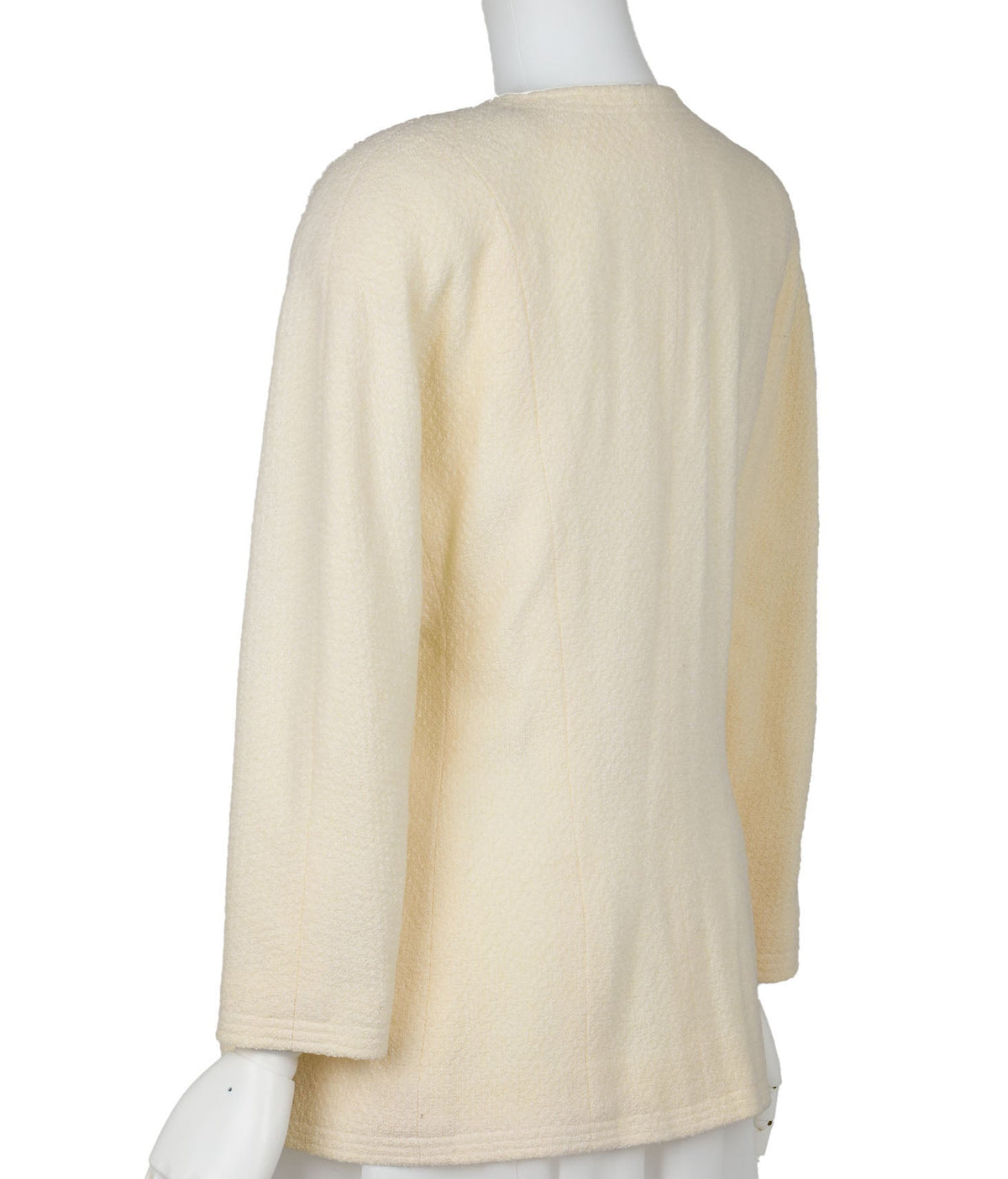 Pre-Owned Kragenlose Jacke, Langarm, Wolle, Elfenbein, Goldfarbene Metallteile, Pre-Owned