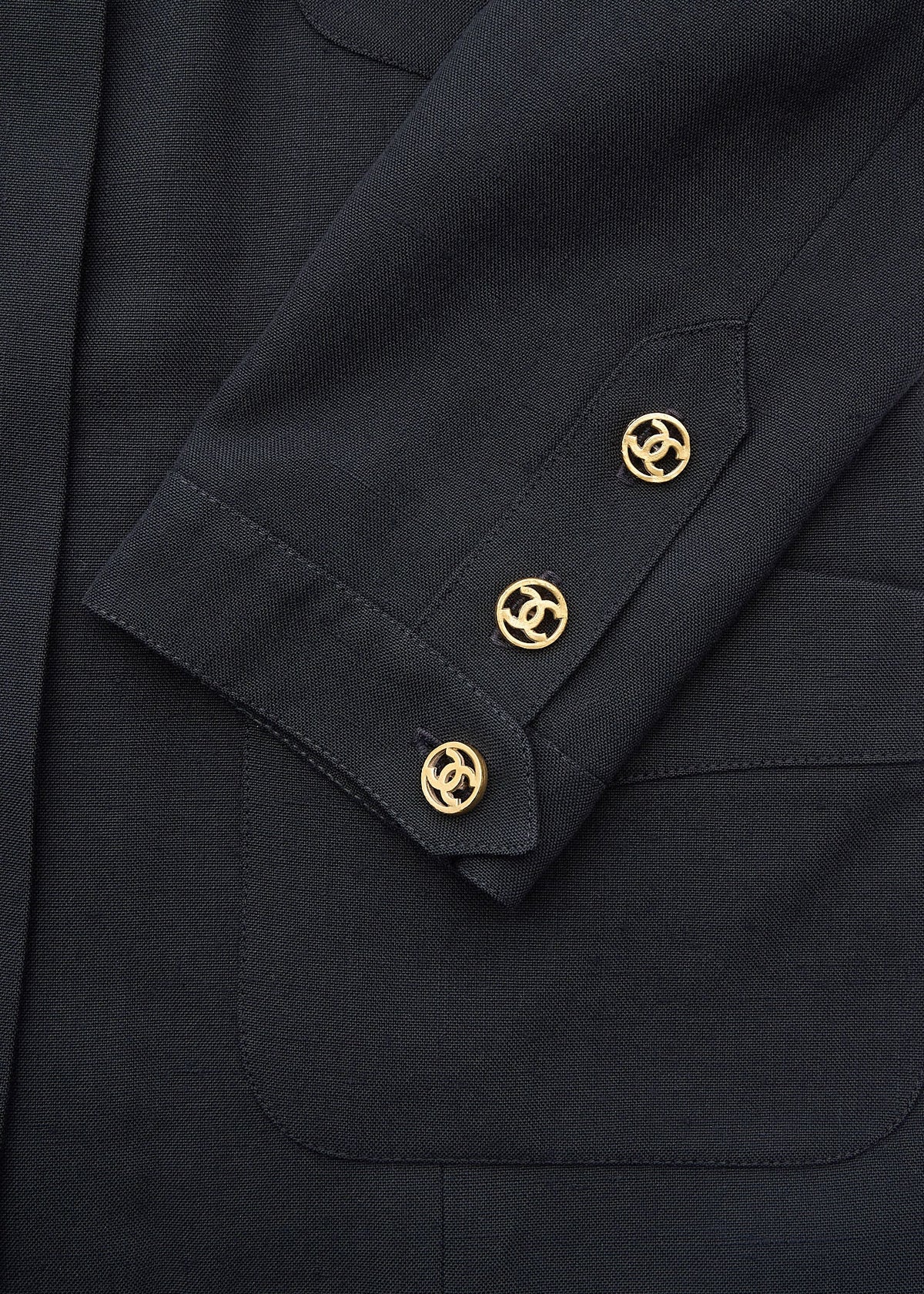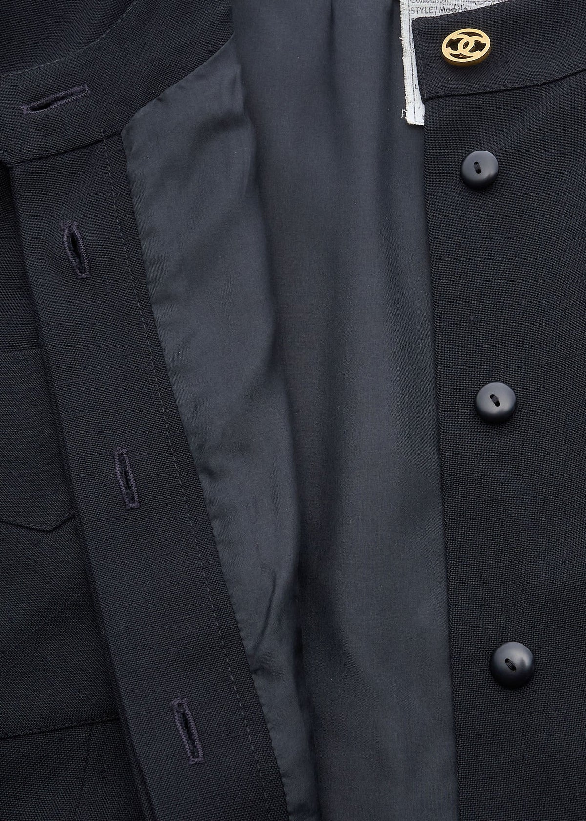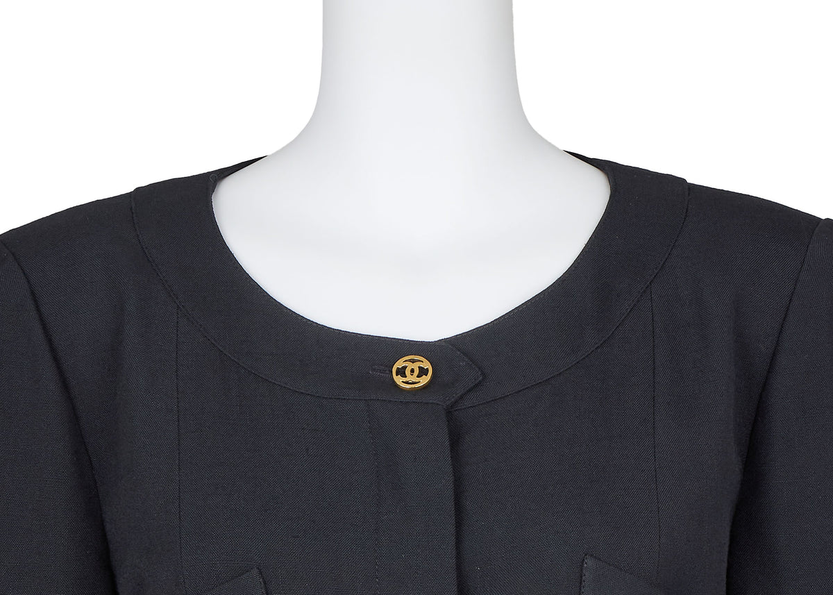 Das elegante kragenlose Design betont Ihr Dekolleté, während die markanten Coco-Knöpfe für den ikonischen CHANEL-Flair sorgen. Diese schwarze Jacke lässt sich mühelos vom Tag in die Nacht verwandeln und ist die perfekte Ergänzung für jedes Outfit.