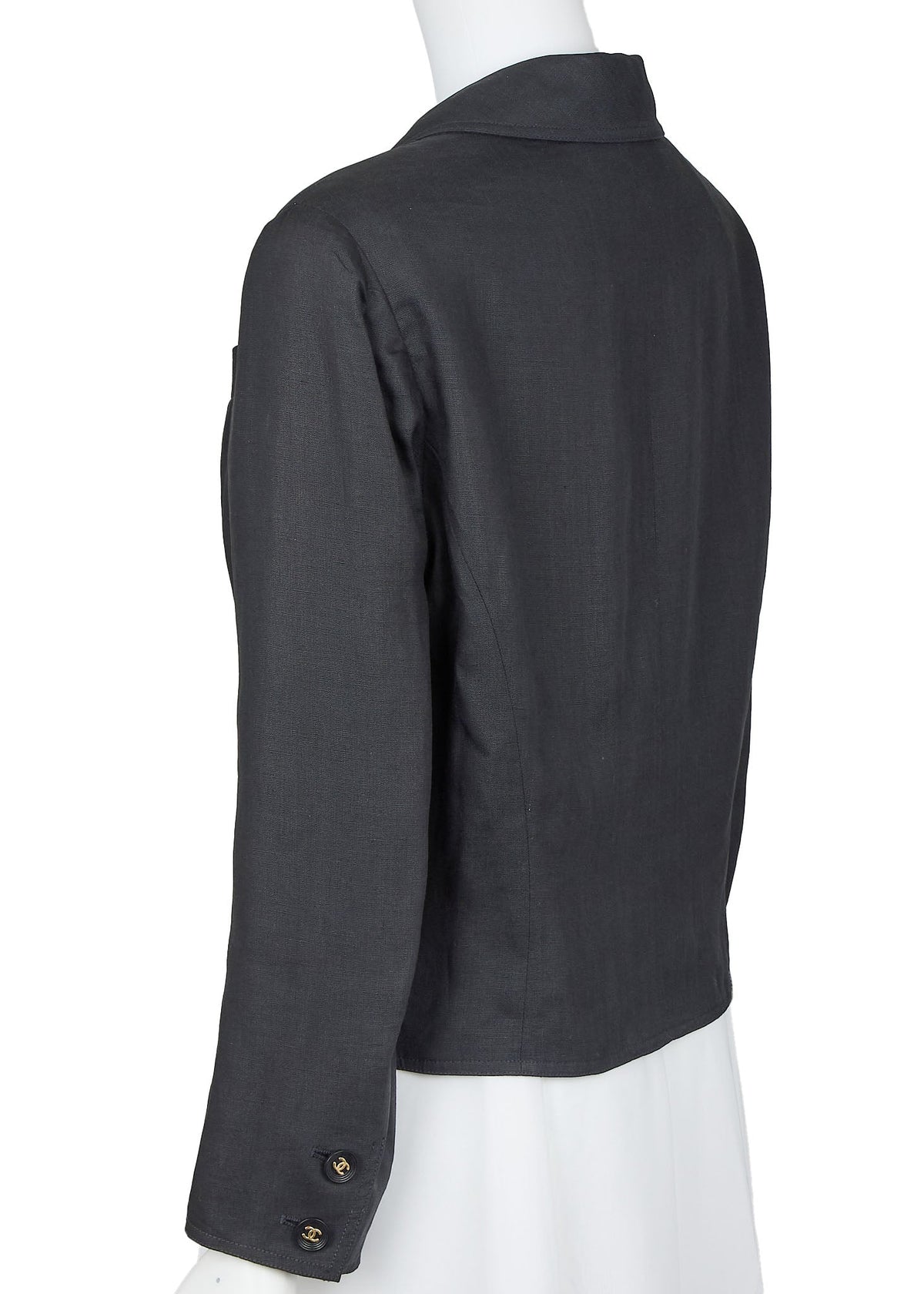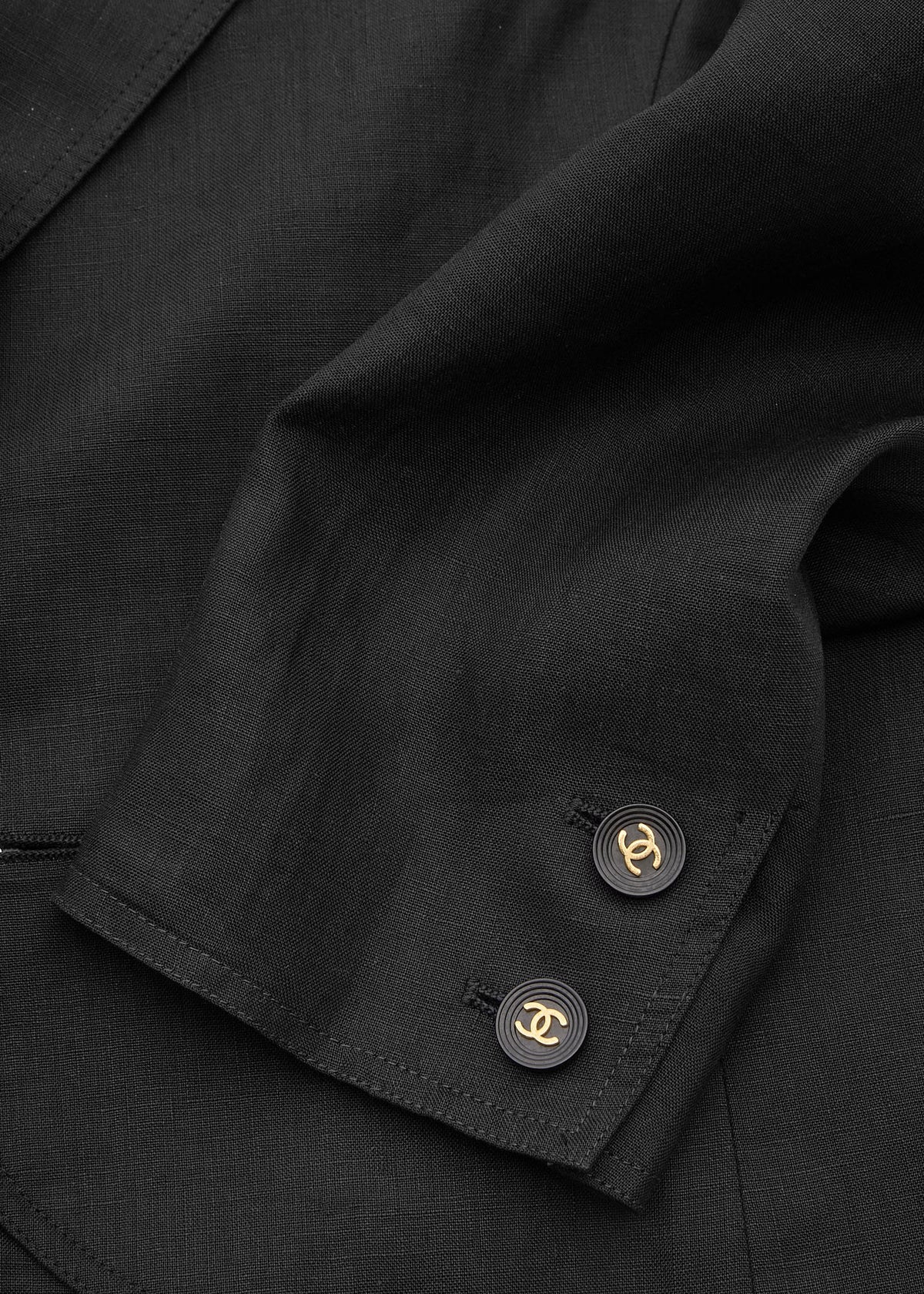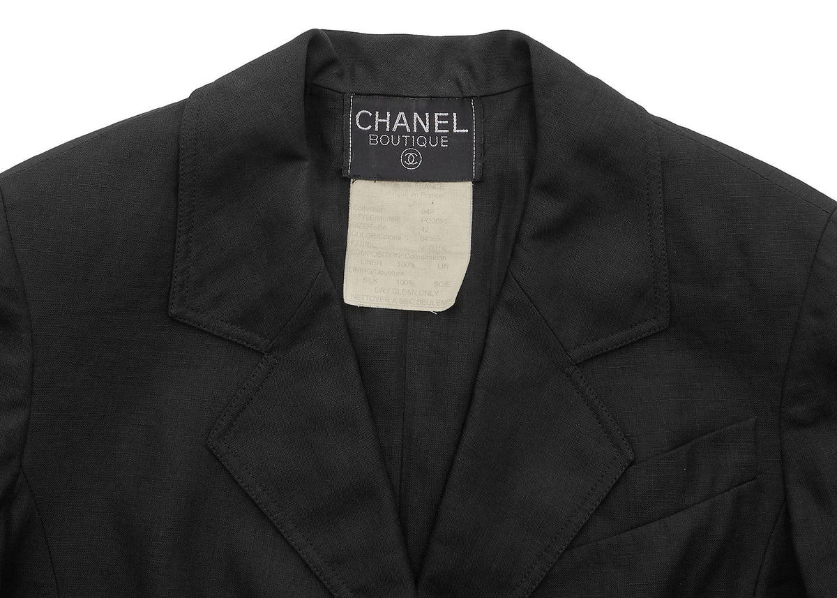Werten Sie Ihre Garderobe mit der CHANEL Coco Button Cropped Jacket auf, einem atemberaubenden Stück, das Eleganz und Vielseitigkeit vereint. Gefertigt aus 100 % hochwertigem Leinen bietet diese Jacke Komfort und Stil zugleich. Ihr klassischer Schwarzton passt perfekt zu jedem Outfit und macht sie zu einer unverzichtbaren Ergänzung Ihrer Kollektion.