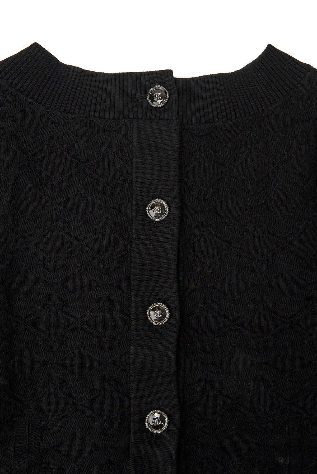 Werten Sie Ihre Garderobe mit den CHANEL Coco Button Design Cardigan Stricktops auf – eine atemberaubende Ergänzung Ihrer Luxuskollektion. Gefertigt aus einer hochwertigen Mischung aus Baumwolle, Nylon und Polyurethan bietet dieser exquisite schwarze Cardigan Stil und Komfort und ist somit ein vielseitiges Kleidungsstück für jeden Anlass.