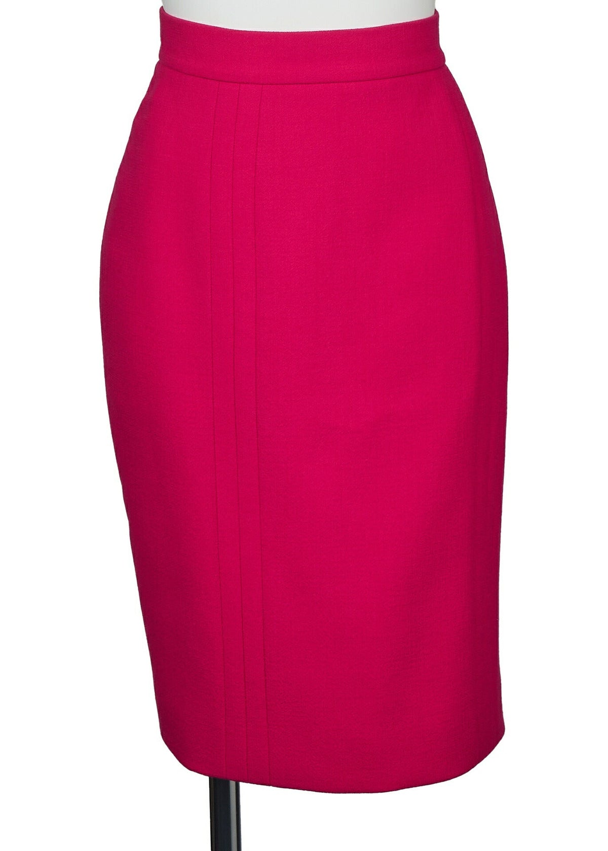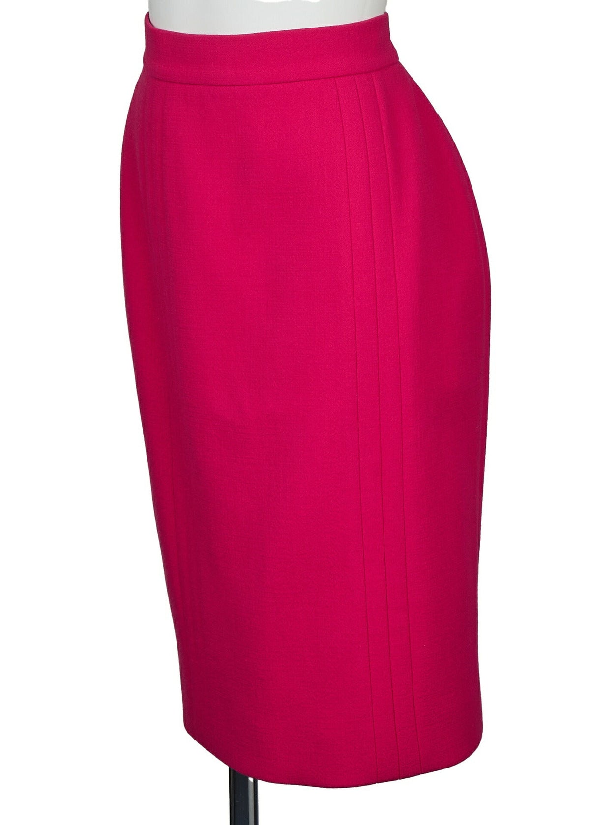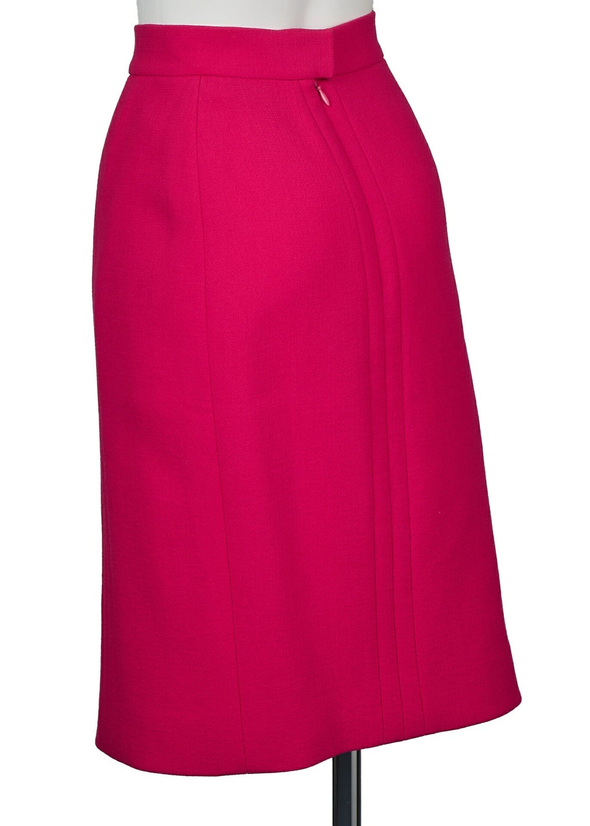 Dieses Ensemble aus Jacke und Rock aus 100 % hochwertiger Wolle verkörpert nicht nur Luxus, sondern sorgt auch den ganzen Tag über für Wärme und Komfort. Der klassische Rosaton verleiht einen Hauch von Weiblichkeit und macht es zur idealen Wahl sowohl für den beruflichen als auch für gesellschaftliche Anlässe.