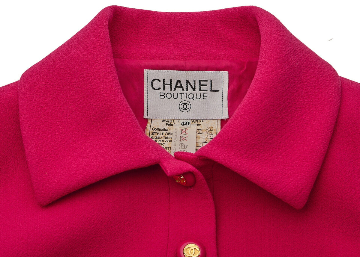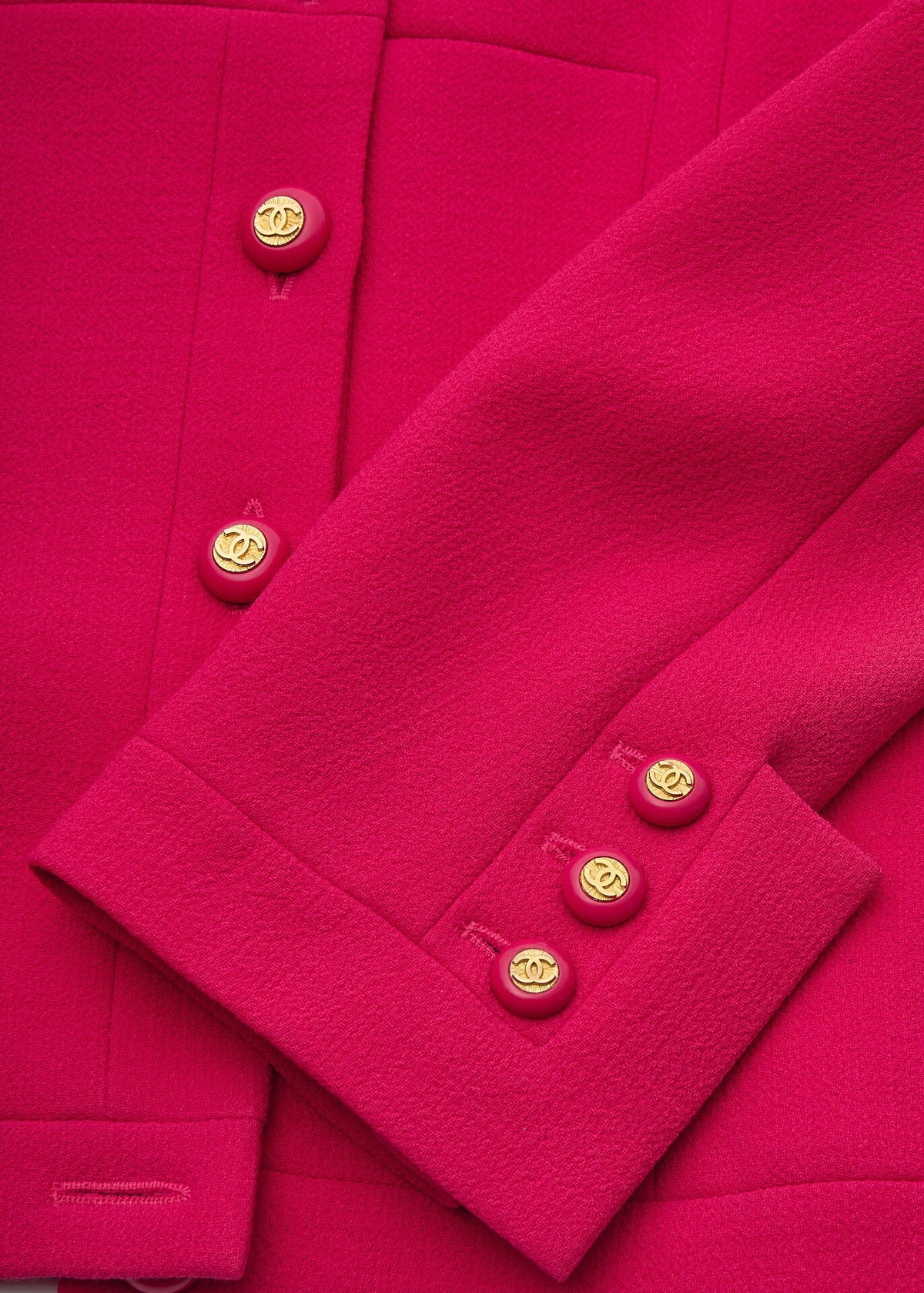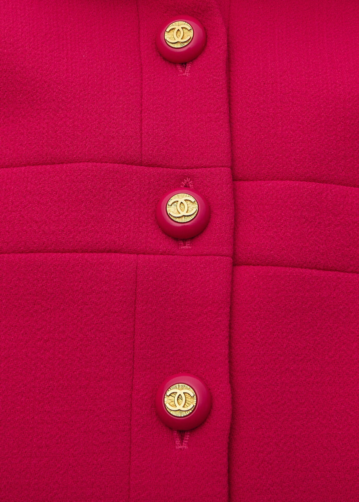 Pre-Owned Jacken-Rock-Set, Coco-Knopf, Wolle, Pink, Goldfarbene Metallteile, Pre-Owned