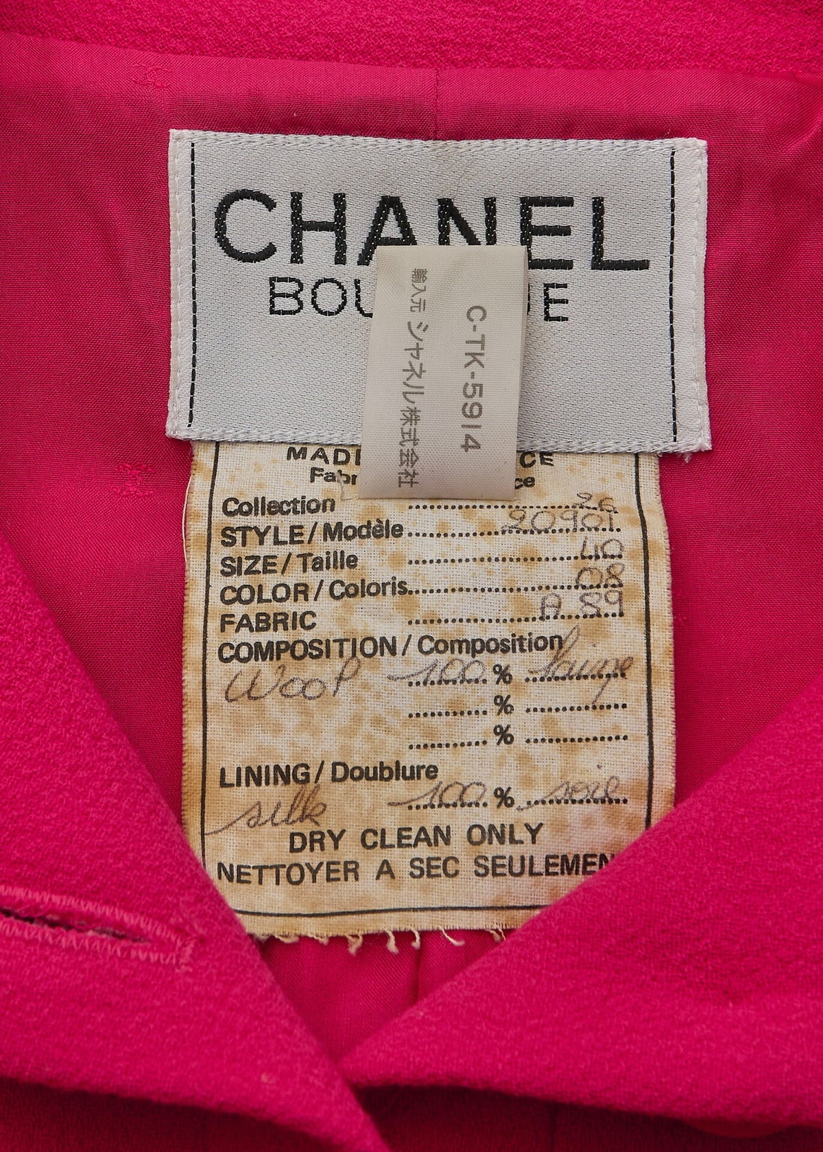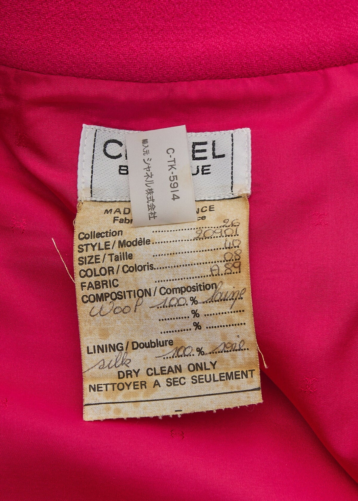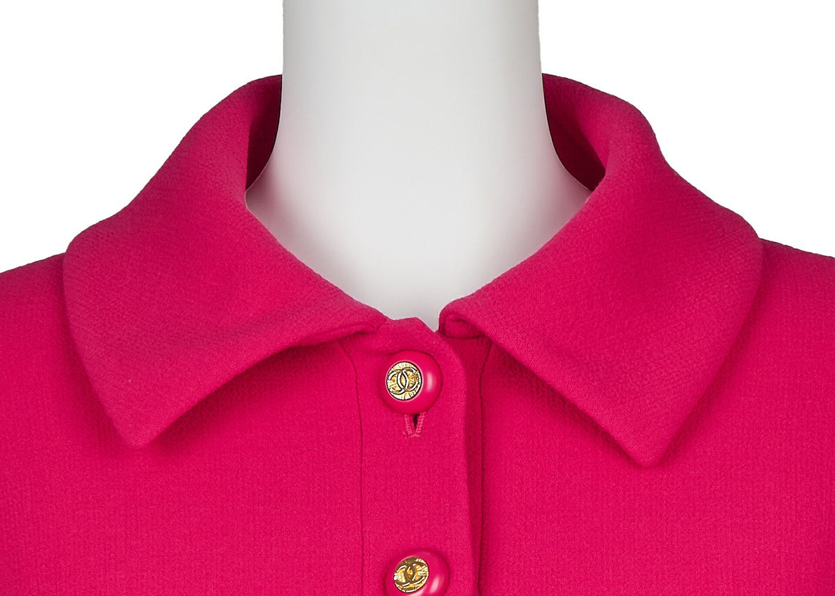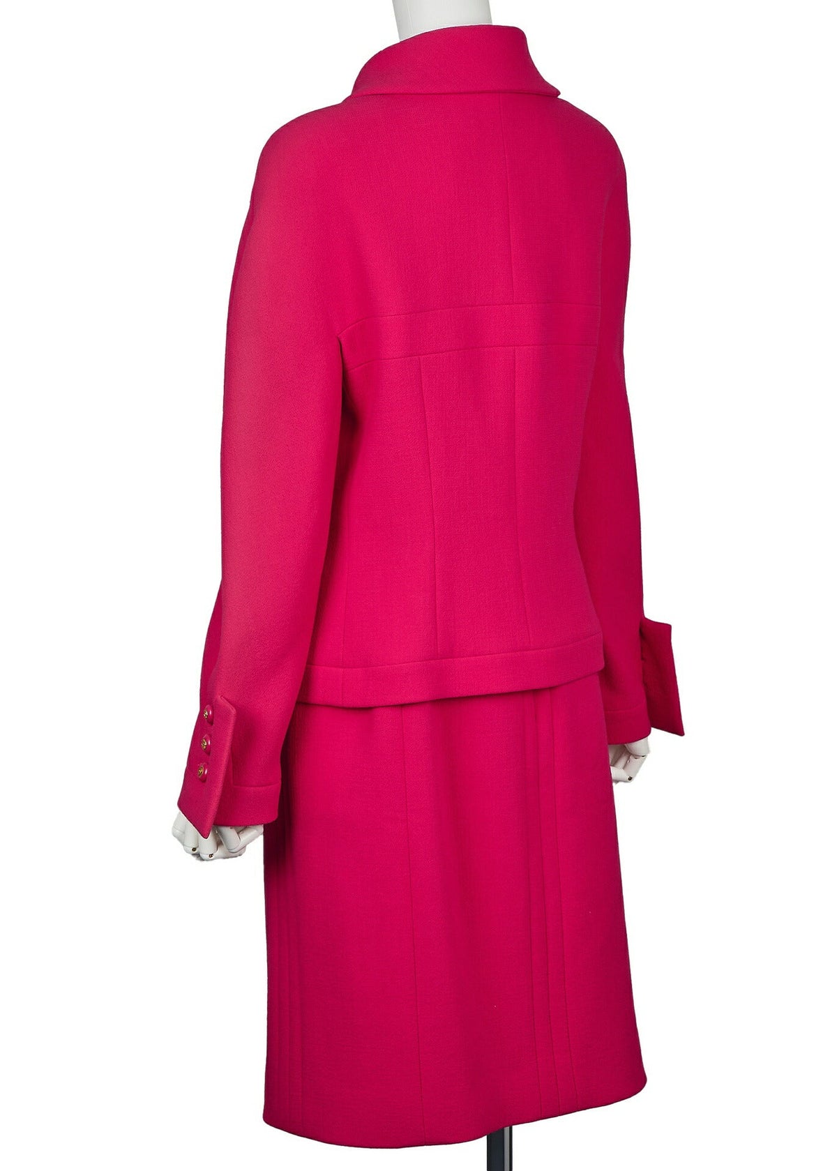 Pre-Owned Jacken-Rock-Set, Coco-Knopf, Wolle, Pink, Goldfarbene Metallteile, Pre-Owned