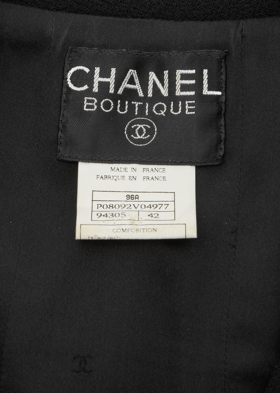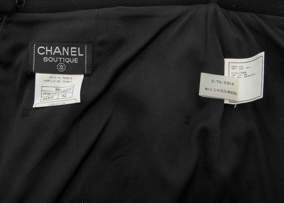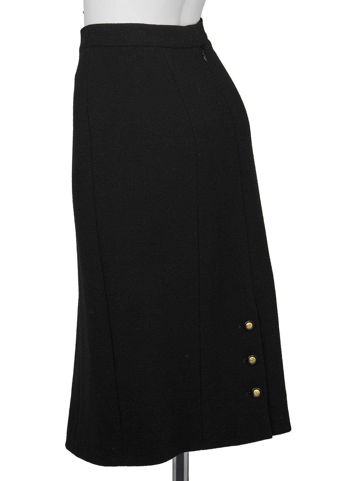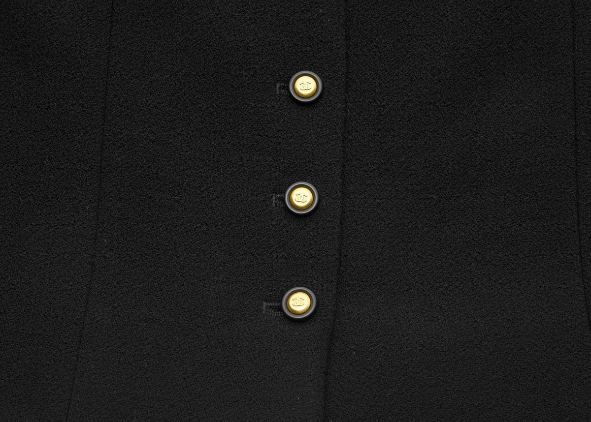 Werten Sie Ihre Garderobe mit dem CHANEL Coco Button Jacket Skirt Set Up 42 auf , einem atemberaubenden Ensemble, das Eleganz und Raffinesse verkörpert. Gefertigt aus 100 % hochwertiger Wolle bietet dieses Set höchsten Komfort und ein luxuriöses Tragegefühl.